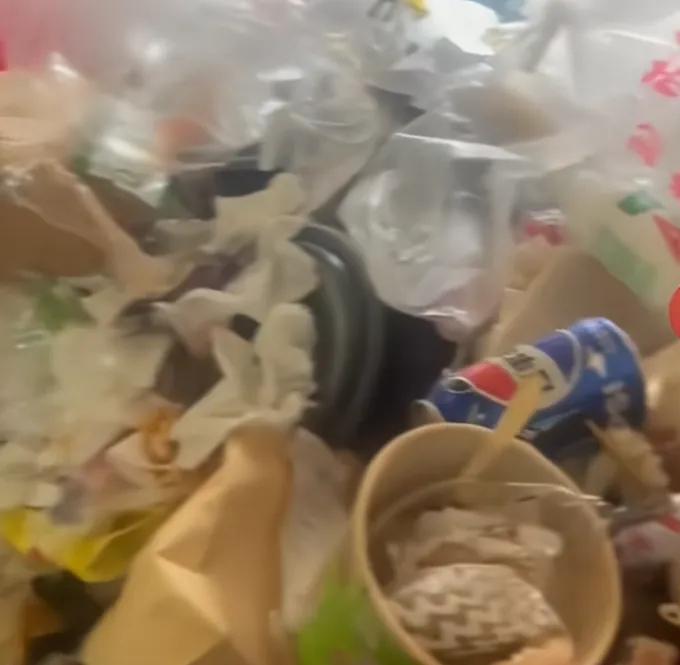 地上堆得全是外卖盒、饮料瓶,踩上去黏糊糊的,沙发上扔满了脏衣服臭袜子,厨房的水池里堆的碗都长了霉,厕所的马桶脏得看不出原来的颜色,墙角还爬着不少臭虫,连个下脚的地方都没有。