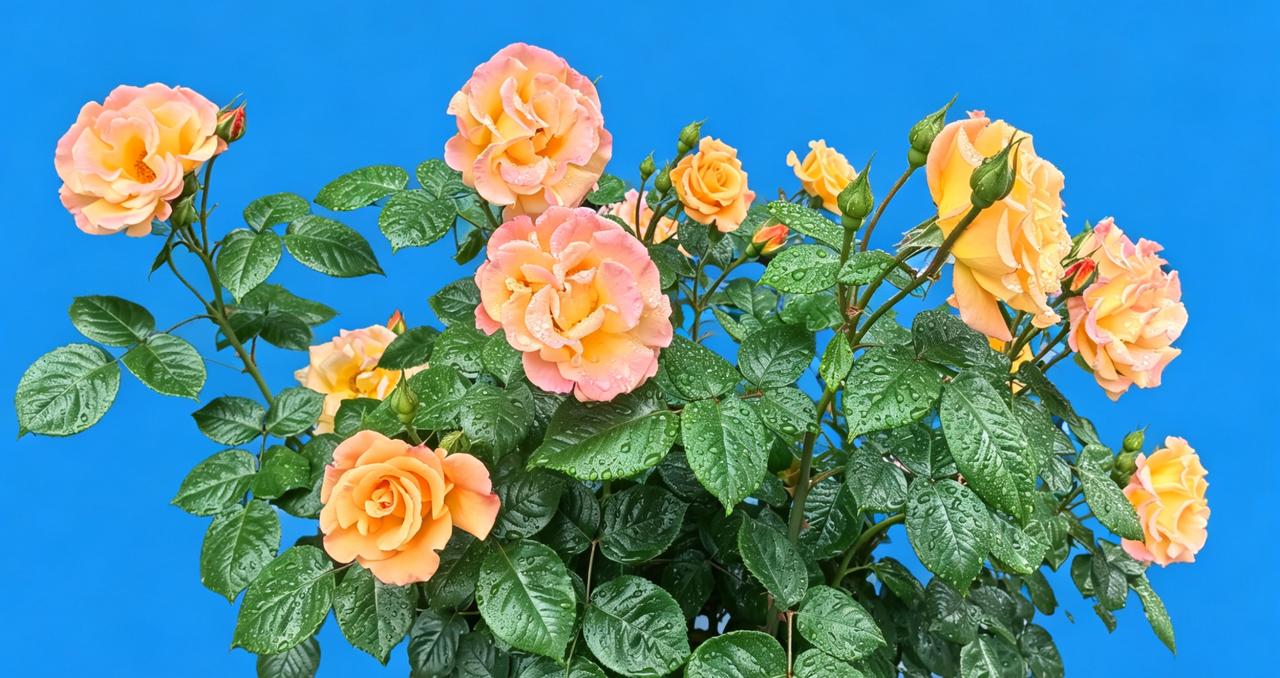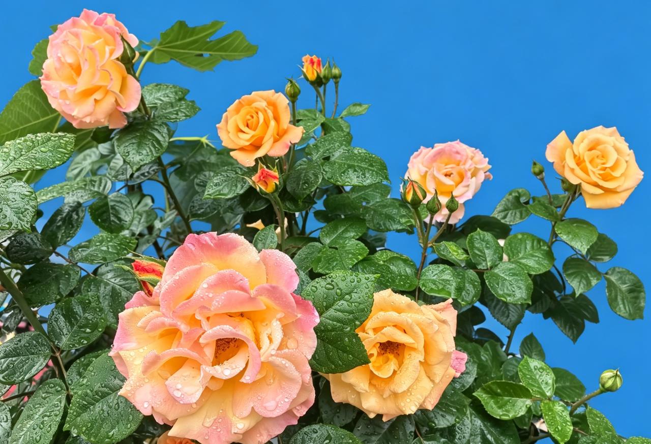 露珠滴落玫瑰瓣,清香满溢心间。