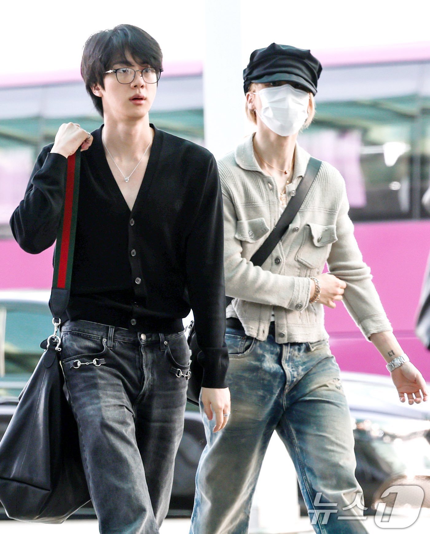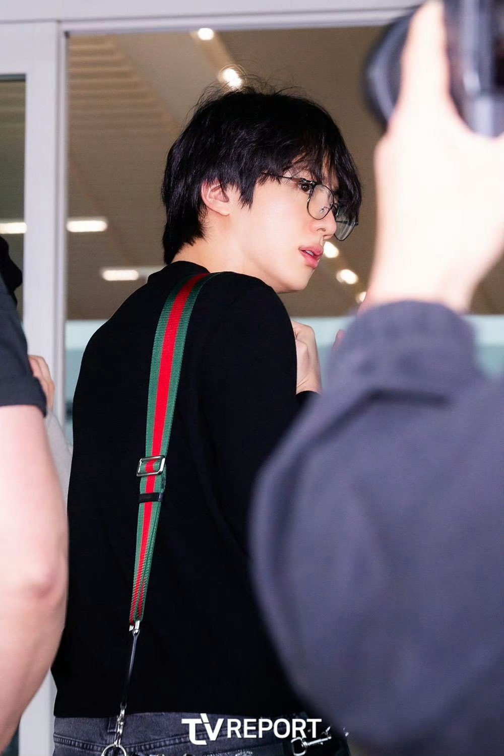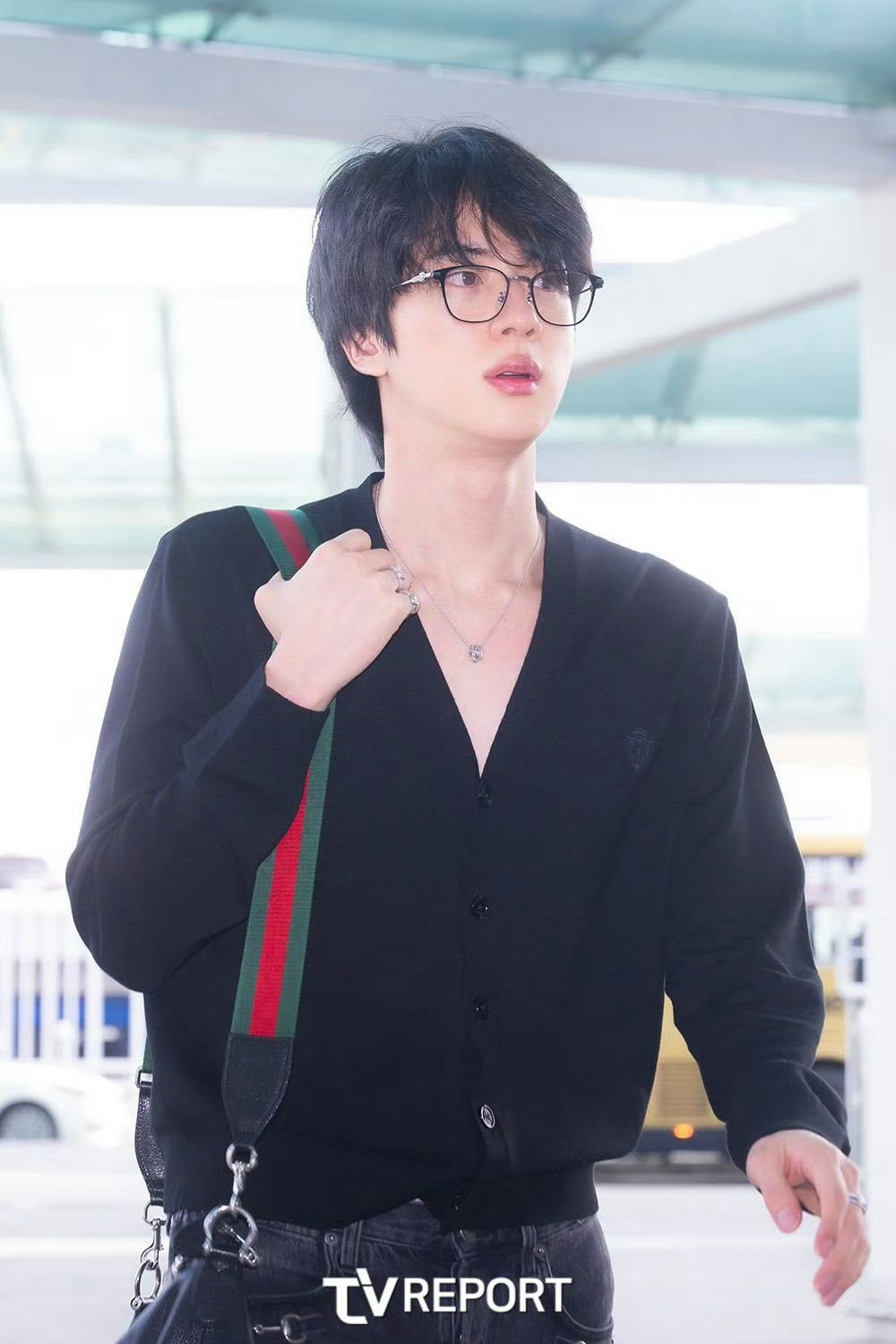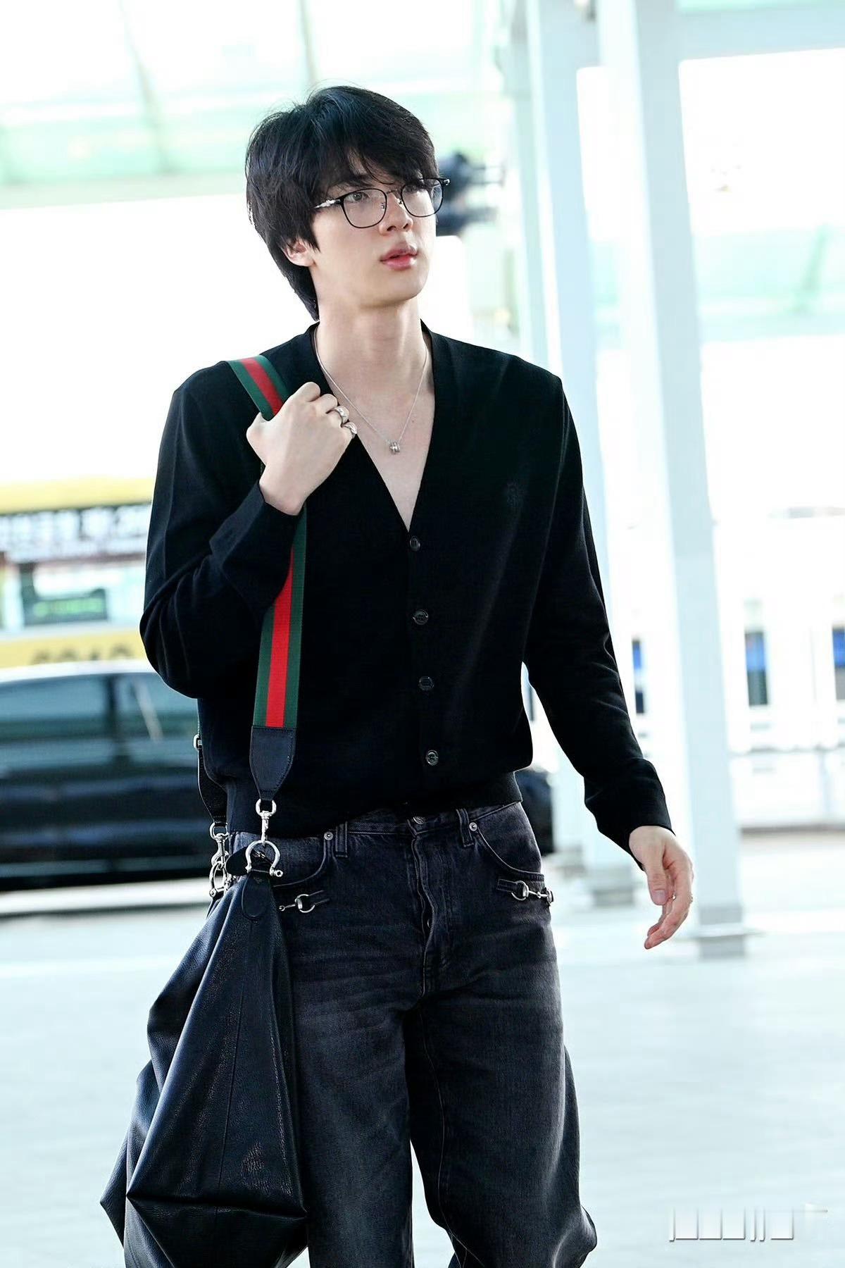 今日机场高清素颜新闻图出境的BTS金硕珍 清纯无遮挡闪闪发光的美貌真的是Lege