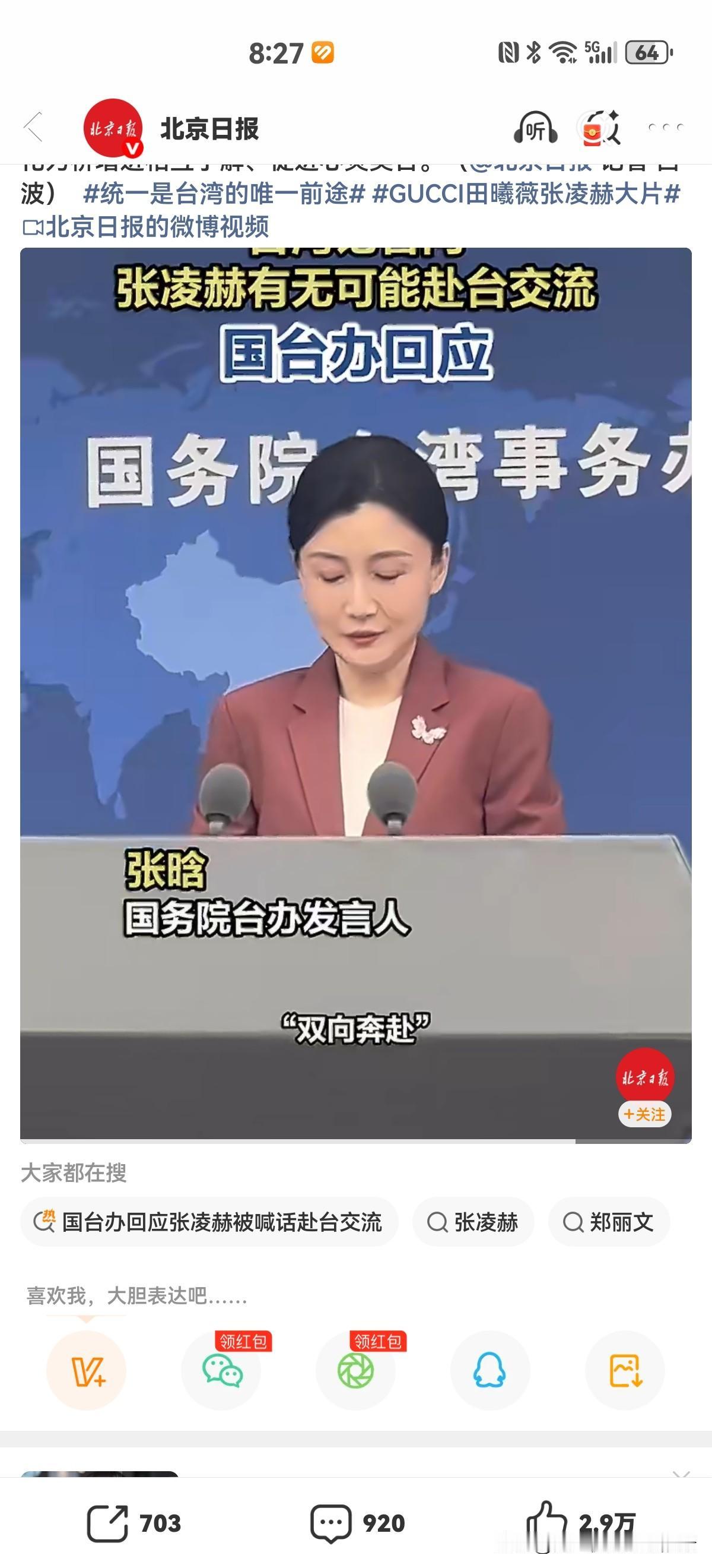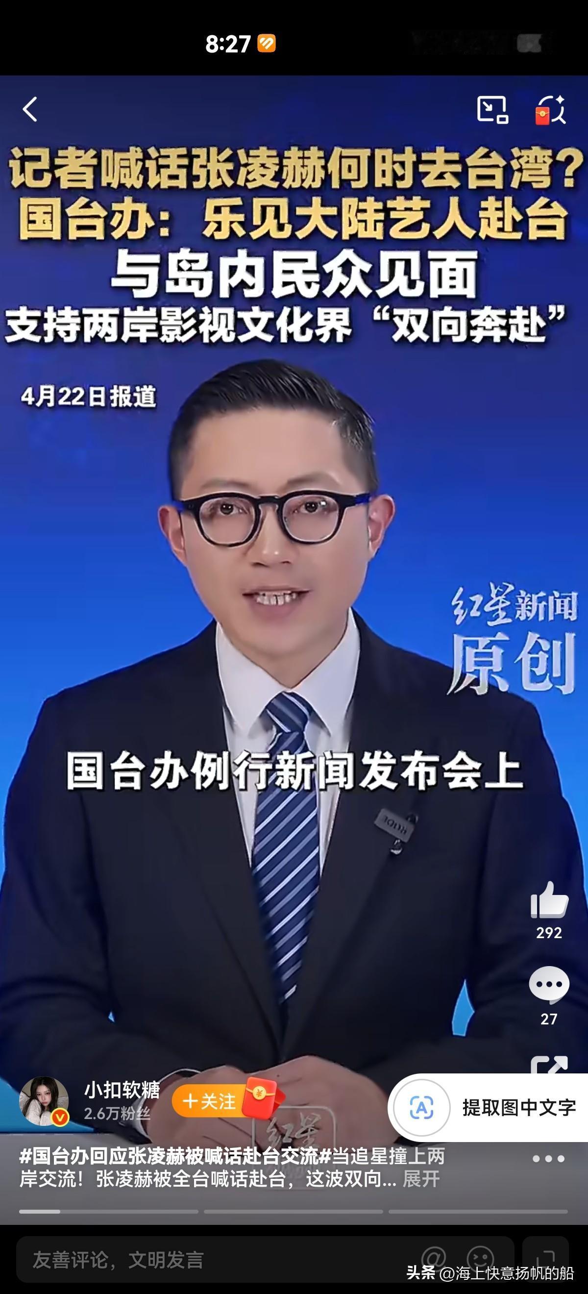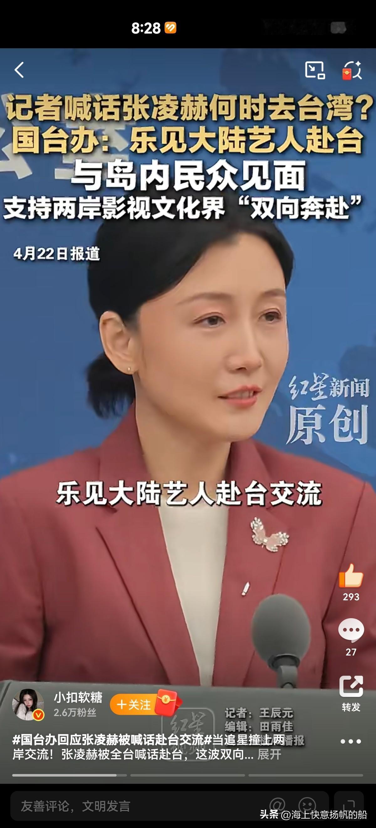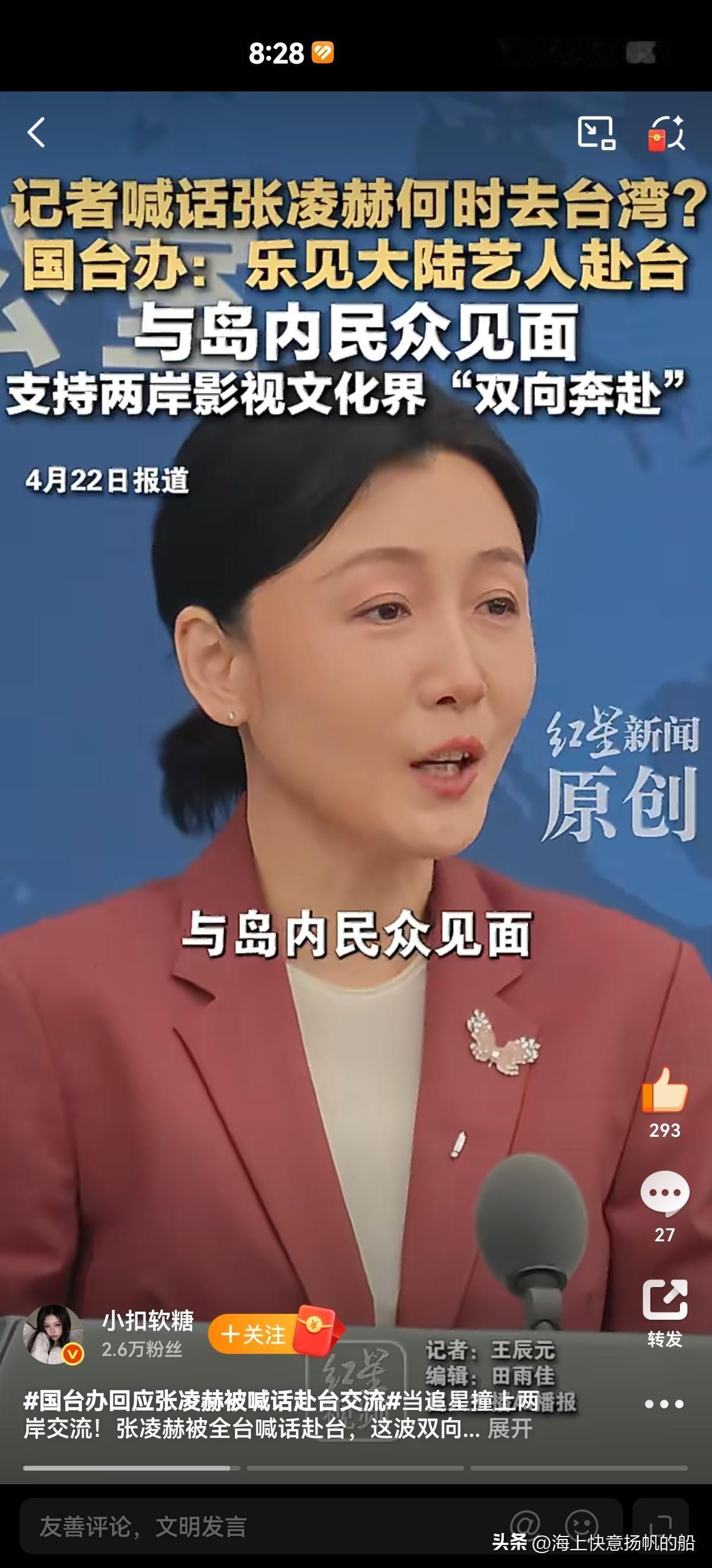 这话一出直接解决了张凌赫此前一切争议。国台办也是顺势回应,表示一向欢迎大陆艺人赴台交流,两岸文化合作,双向奔赴。