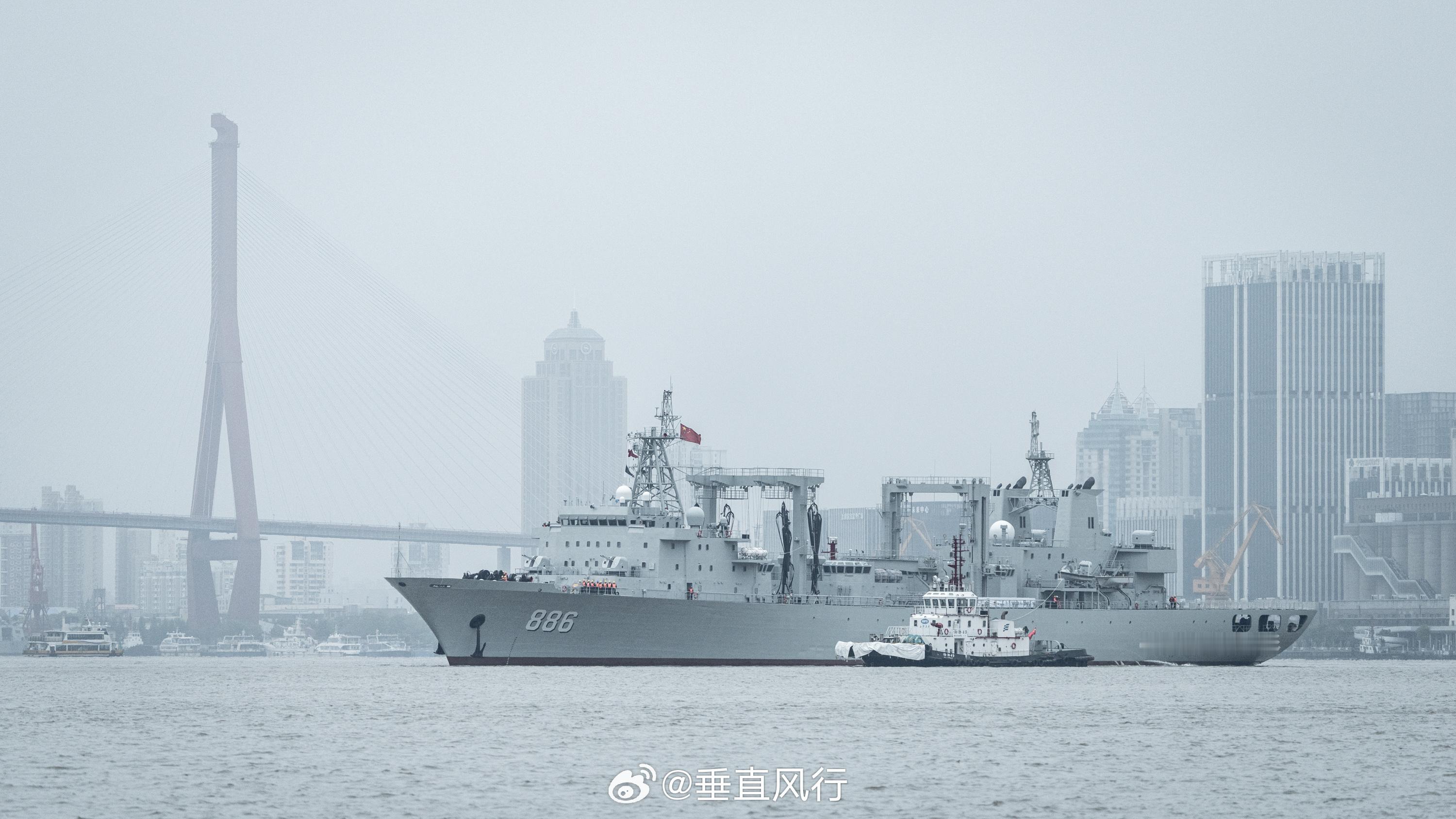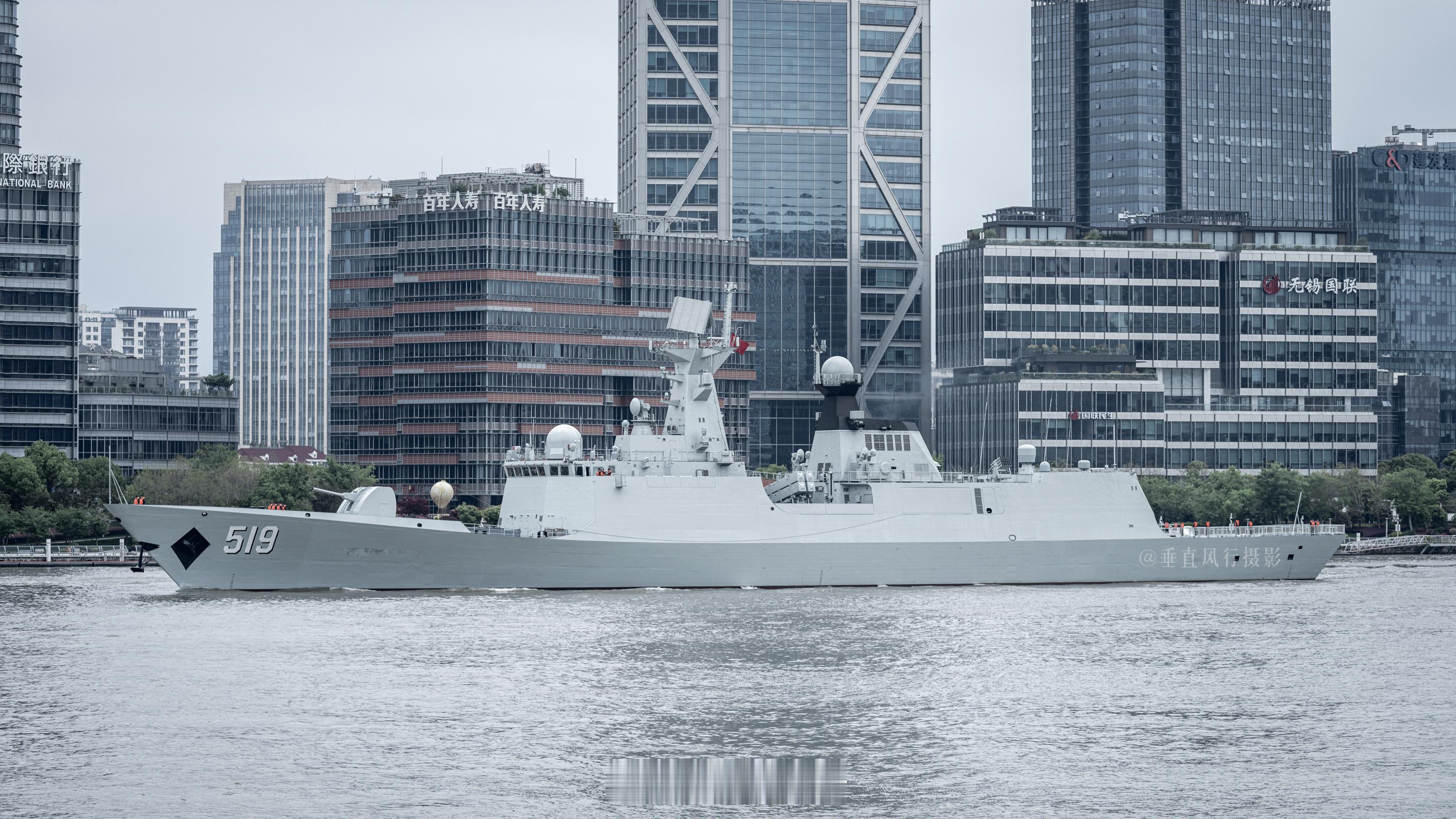 此次来到北外滩扬子江码头参加人民海军成立77周年开放活动的两艘战舰——阜阳舰、千