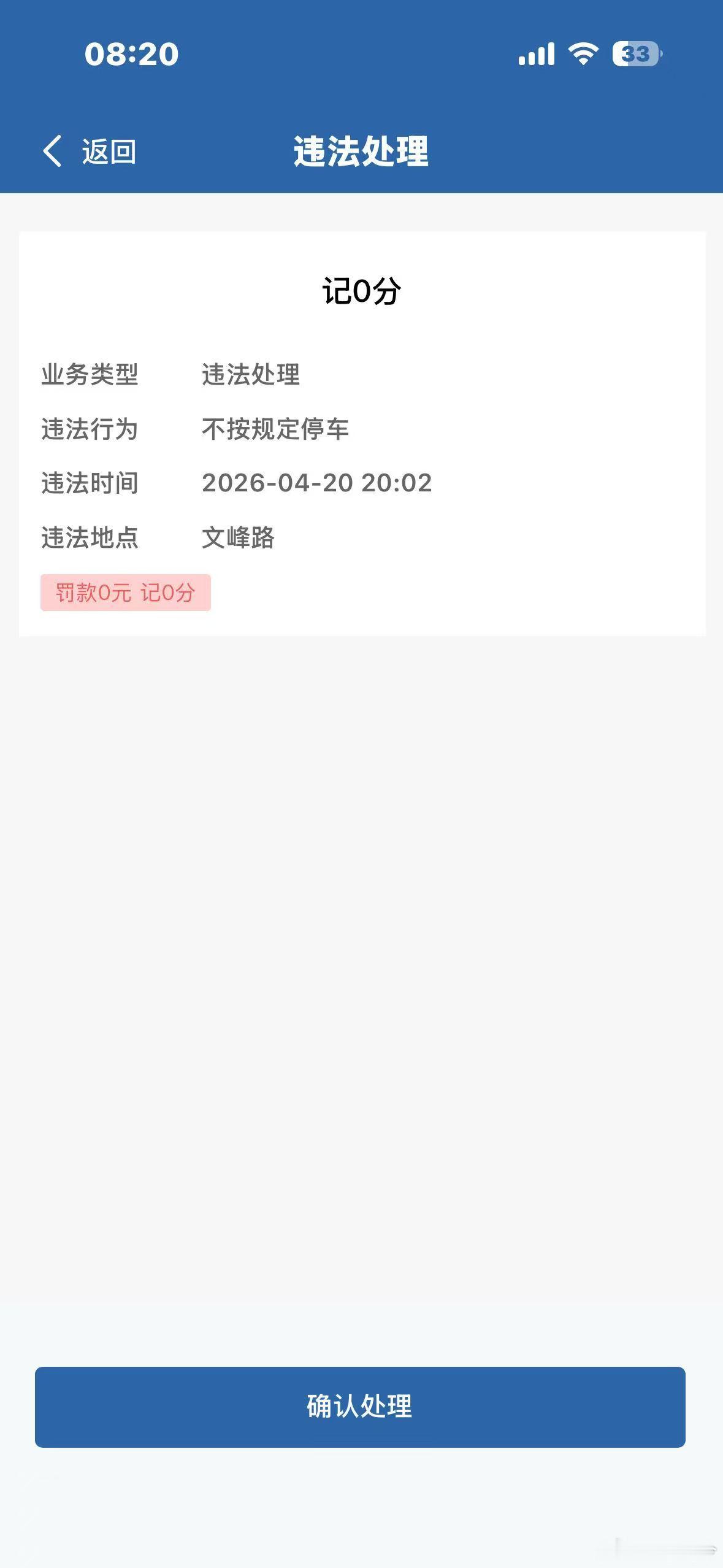 刚收到违停的短信通知,手机就提示了,而且直接放在灵动岛上这么贴心是怕我忘记处理嘛然后打开12123,看着是扣100罚0分,看个视频30秒,就变成扣0元罚0分了,应该是初犯可以原谅吧