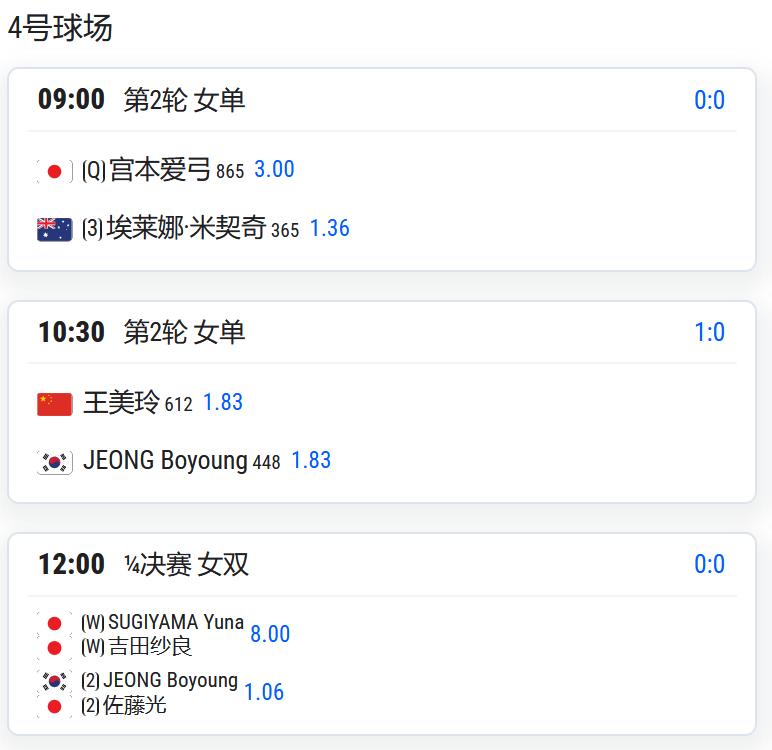 W35宫崎,女单第二轮,王美玲将对阵韩国的姜波英;