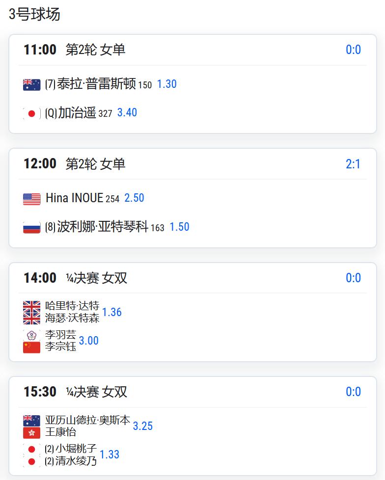 女双四分之一决赛,李宗钰/李羽芸将对阵英国组合达特/沃特森;