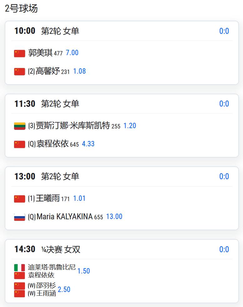 袁程依依/凯鲁比尼将对阵邵羽杉/王雨涵;