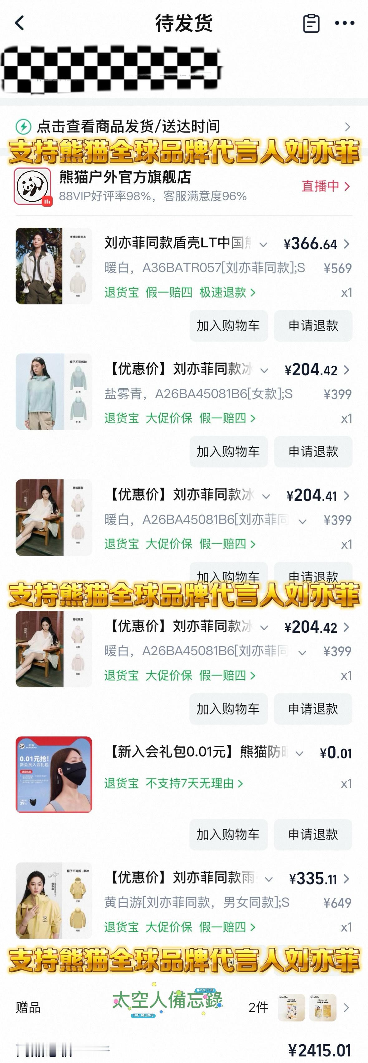 恭喜熊猫签到刘亦菲!帮仙粉晒单 熊猫全球品牌代言人刘亦菲 刘亦菲