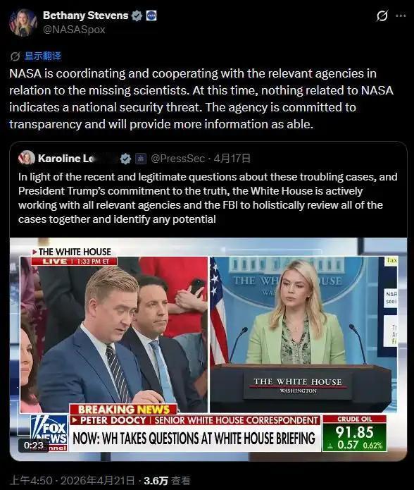 近期美国至少10名手握敏感科研信息的尖端领域专家接连离奇死亡、失踪,引发舆论猜测,惊动白宫。当地时间4月20日,FBI牵头联合美国能源部、国防部等多部门彻查案件关联。特朗普称事态严峻,将持续跟进调查。美国众议院监督委员会同步启动独立调查,要求多部门限期提交相关简报,认为系列事件大概率并非巧合,存在国家安全隐患。NASA则表态正配合调查,目前暂未发现安全威胁。
