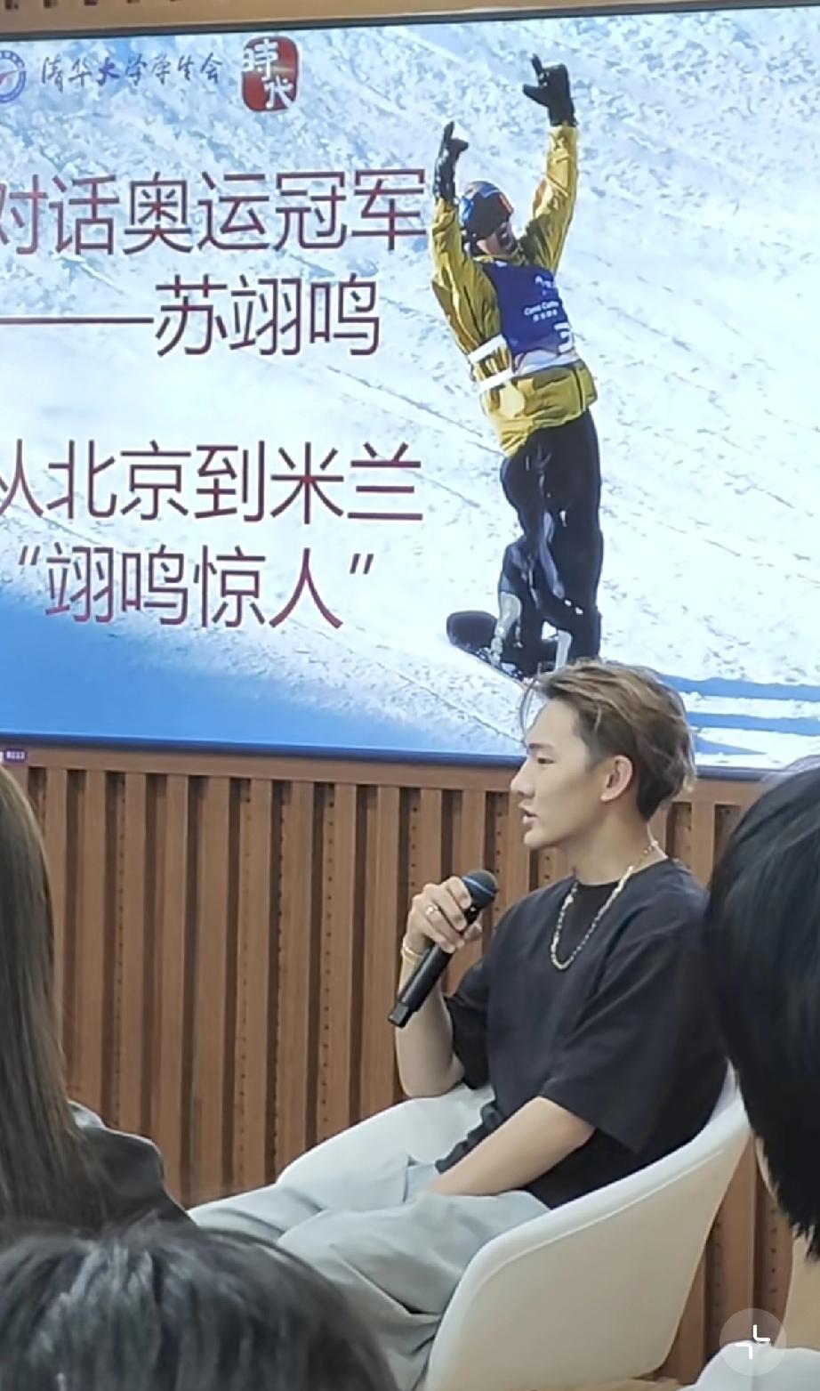 不过,一回清华园,苏翊鸣首先被邀请到了讲台上分享个人的成长心得。