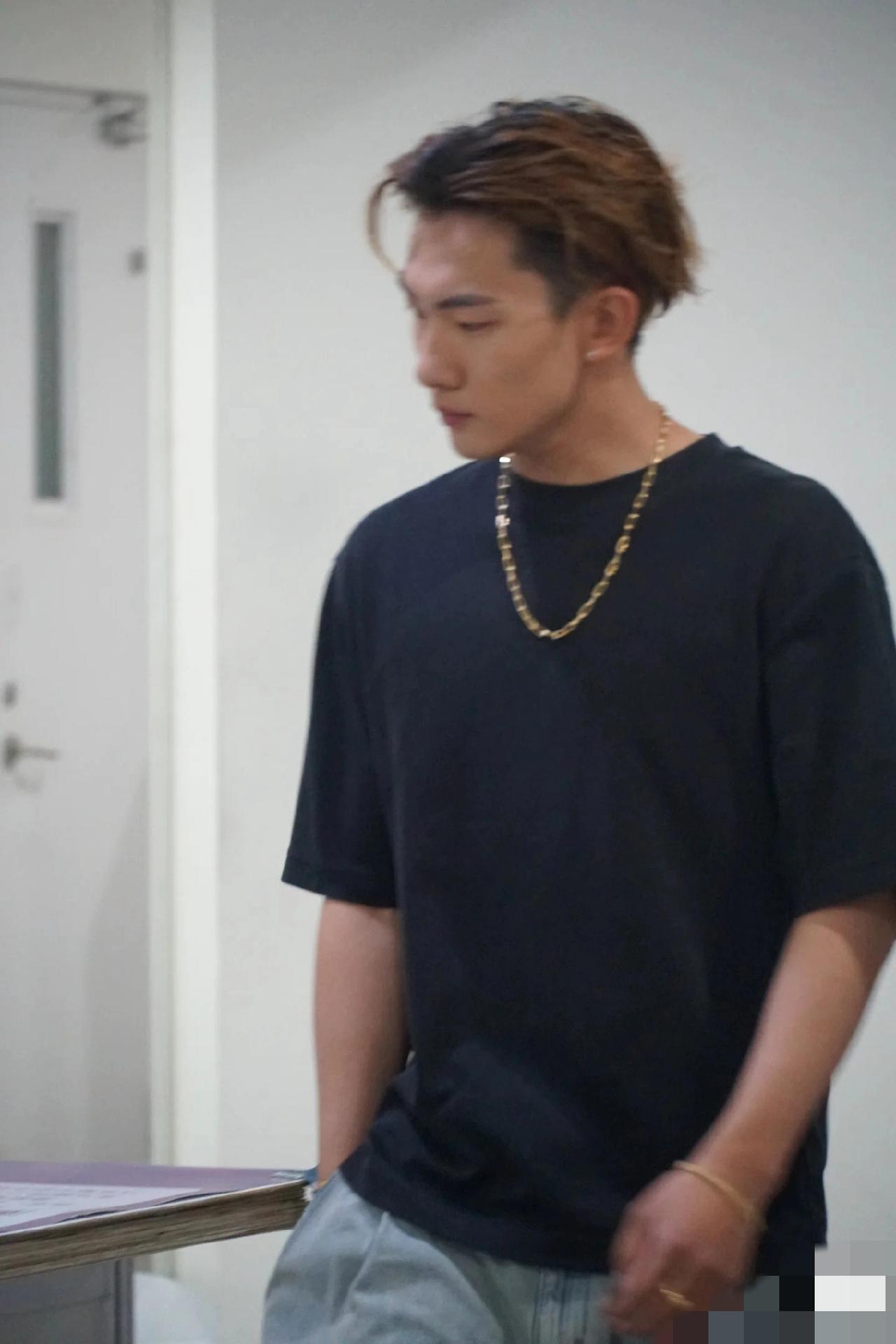 台上的他就像明星似的,打扮时尚戴了长长的金链子,还戴了戒指手镯耳钉。