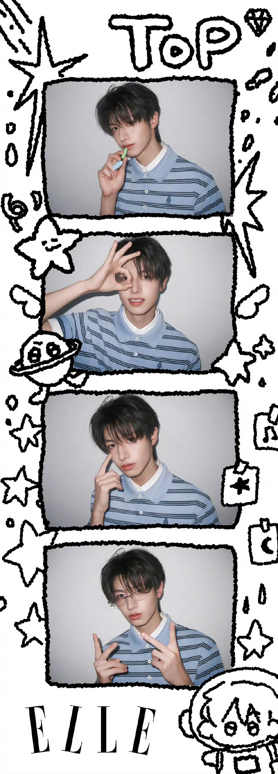 登陆少年ELLE双封面释出,官微还更新了人生四宫格怼脸特写,五人五色,帅气上线
