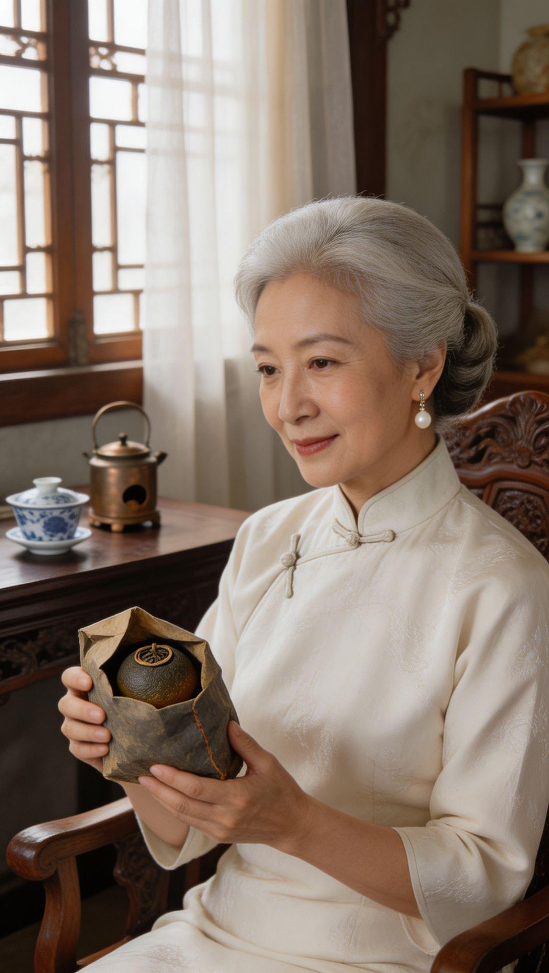 《鹧鸪天·柑普》 君赠红柑手自藏,掰开茶果两相将。 三秒洗尘犹未饮,七分等君试