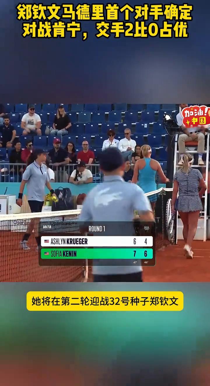 郑钦文马德里首个对手确定对战肯宁,交手2比0占优。
