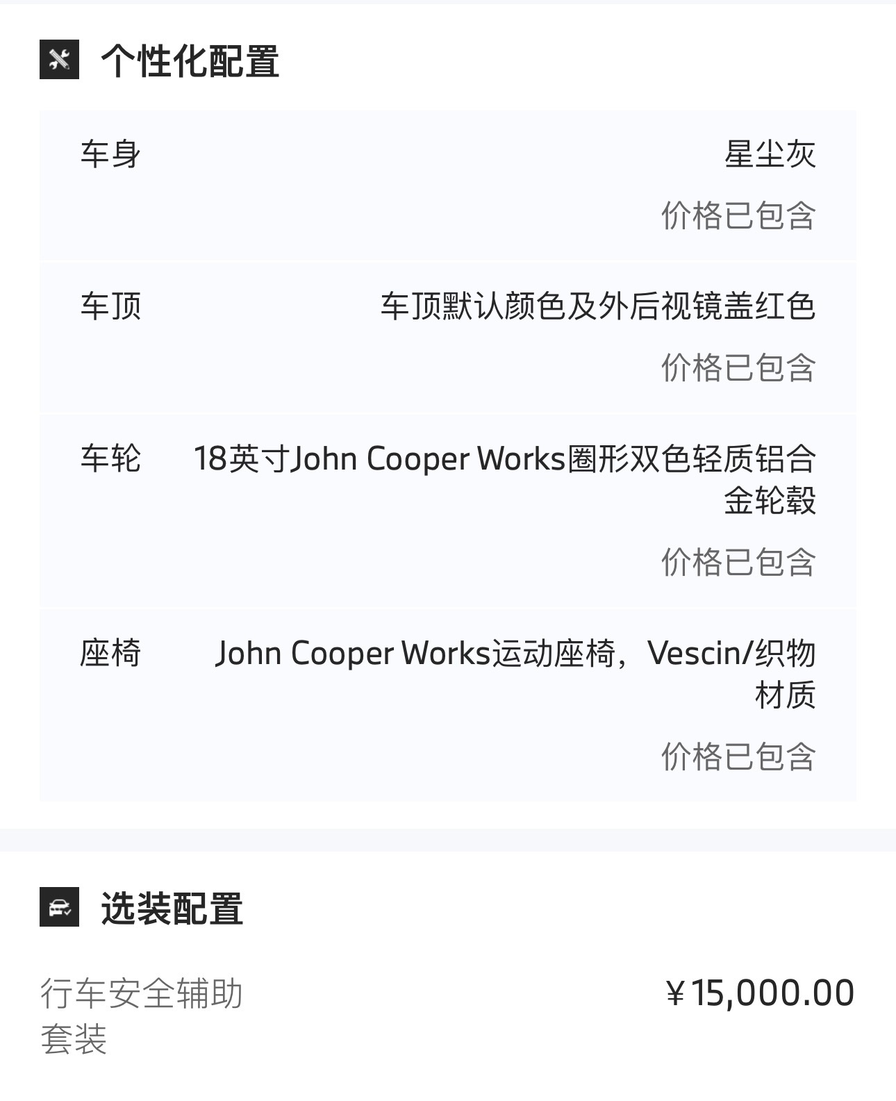 MINI jcw敞篷 星云灰外观官方指导价:364800(含15000选装包)全款优惠:14800364800-14800=35万 裸车价可以卖全国,个人户公户都行