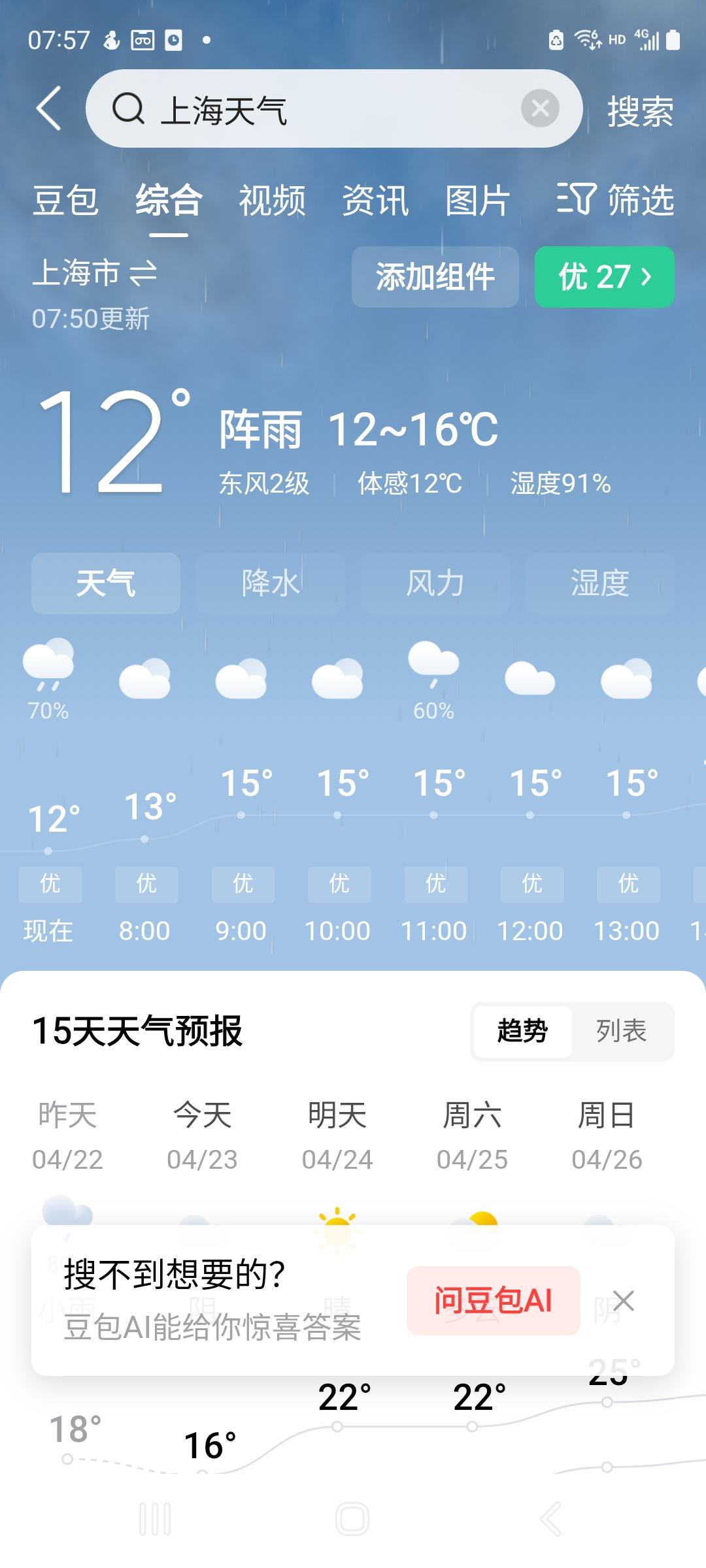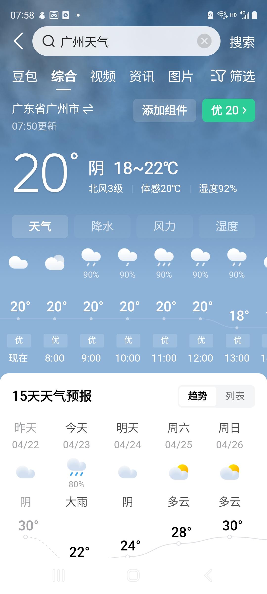 还有,今天是北京4月份第18个霾天,预报二级良84,比昨天良60加重了,远处城景更模糊(见附图9),上午整个天空大多都厚灰色,仅顶上一小片很浅的蓝,几抹没立体感的灰白色云迹。