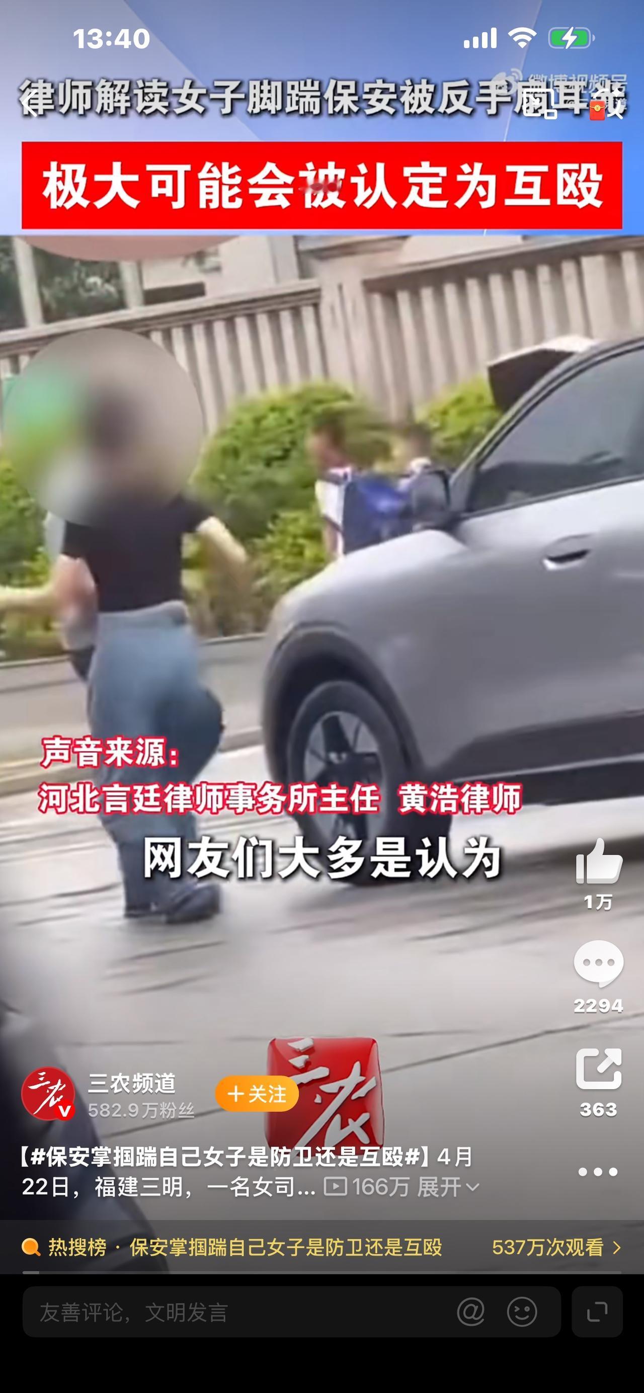 网传剪辑视频:只看到女子下车踹保安,被反手重扇一巴掌,