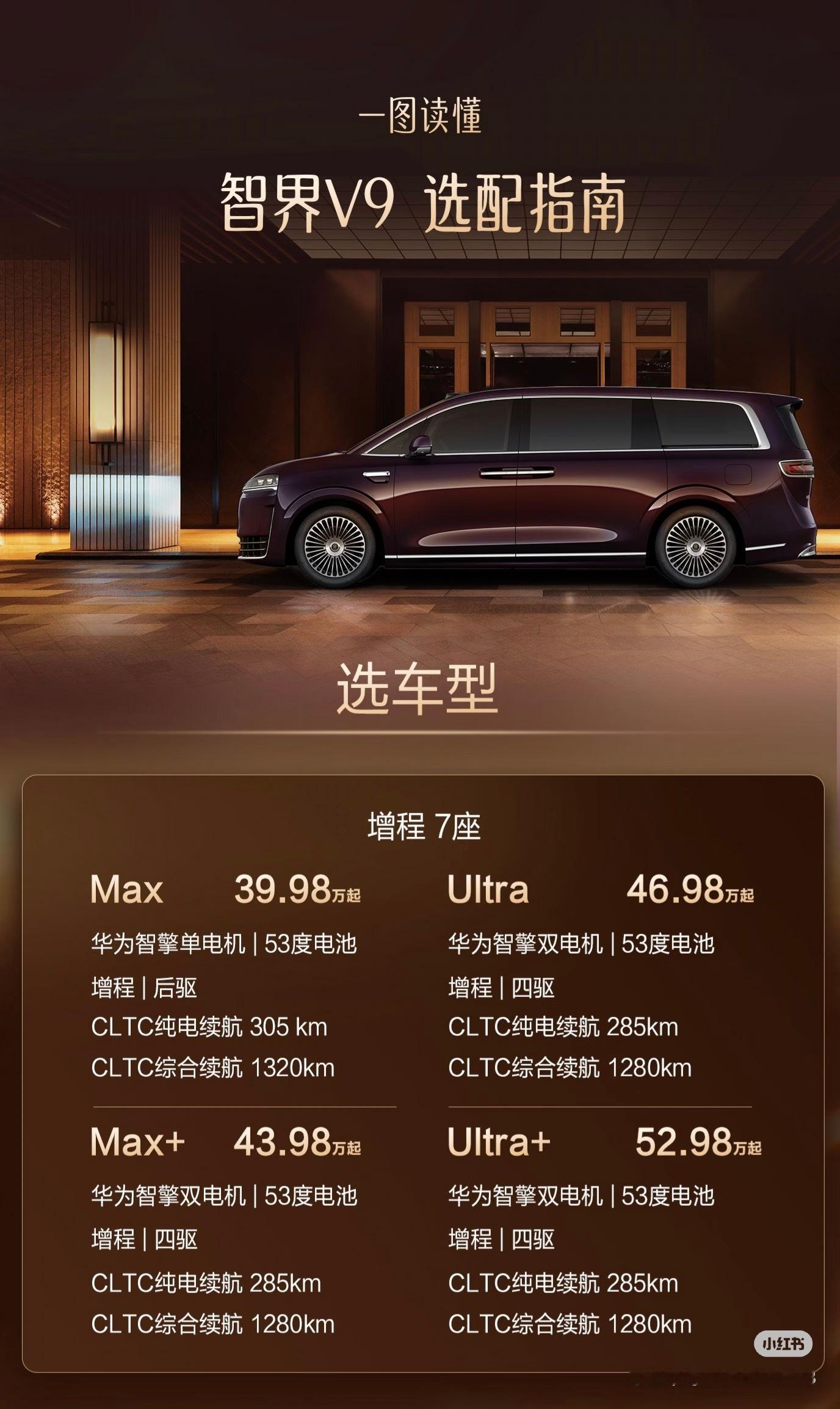 智界V9,电池容量都一样,智能化也一样。感觉最便宜的Max版本性价比最高!