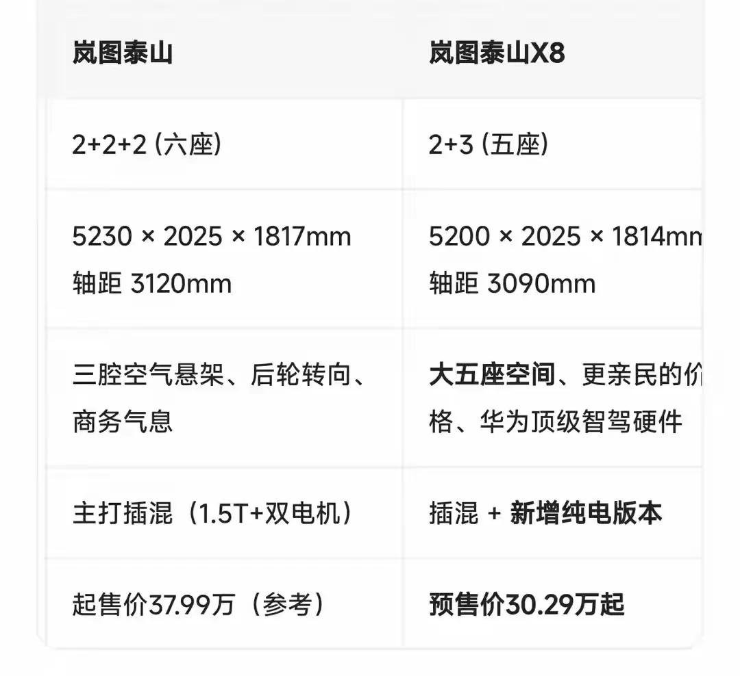 岚图泰山和泰山X8的区别…