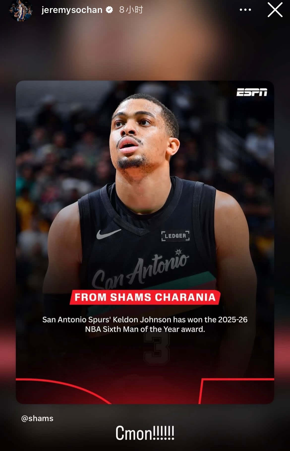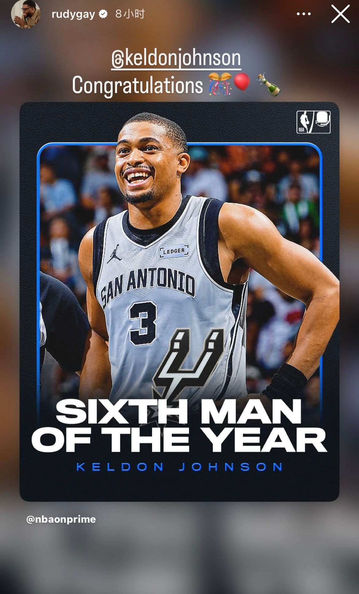 超话创作官 |凯尔登约翰逊当选最佳第六人 |圣安东尼奥马刺