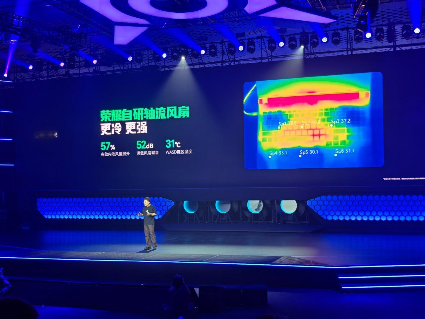 可能大家都有这种感觉,三风扇散热实际用下来会发现内吹风道经常“偏心”,实际体验不如预期。荣耀这次搞的这个“东风尾喷散热引擎”思路挺清晰,通过自研的离心轴流混吹系统重构了风道,把内吹区域风量直接提升了57%,解决了核心硬件散热不均的痛点。这种底层设计的改动换来了额外的20W性能释放增益,总释放直接冲到270W,确实把同配置的性能天花板又往上顶了顶。对于追求极致性能的用户来说,这种针对行业通病做的针对性优化,比单纯喊口号要有意义得多。 荣耀WIN游戏本荣耀发布会 成都·成都科幻馆