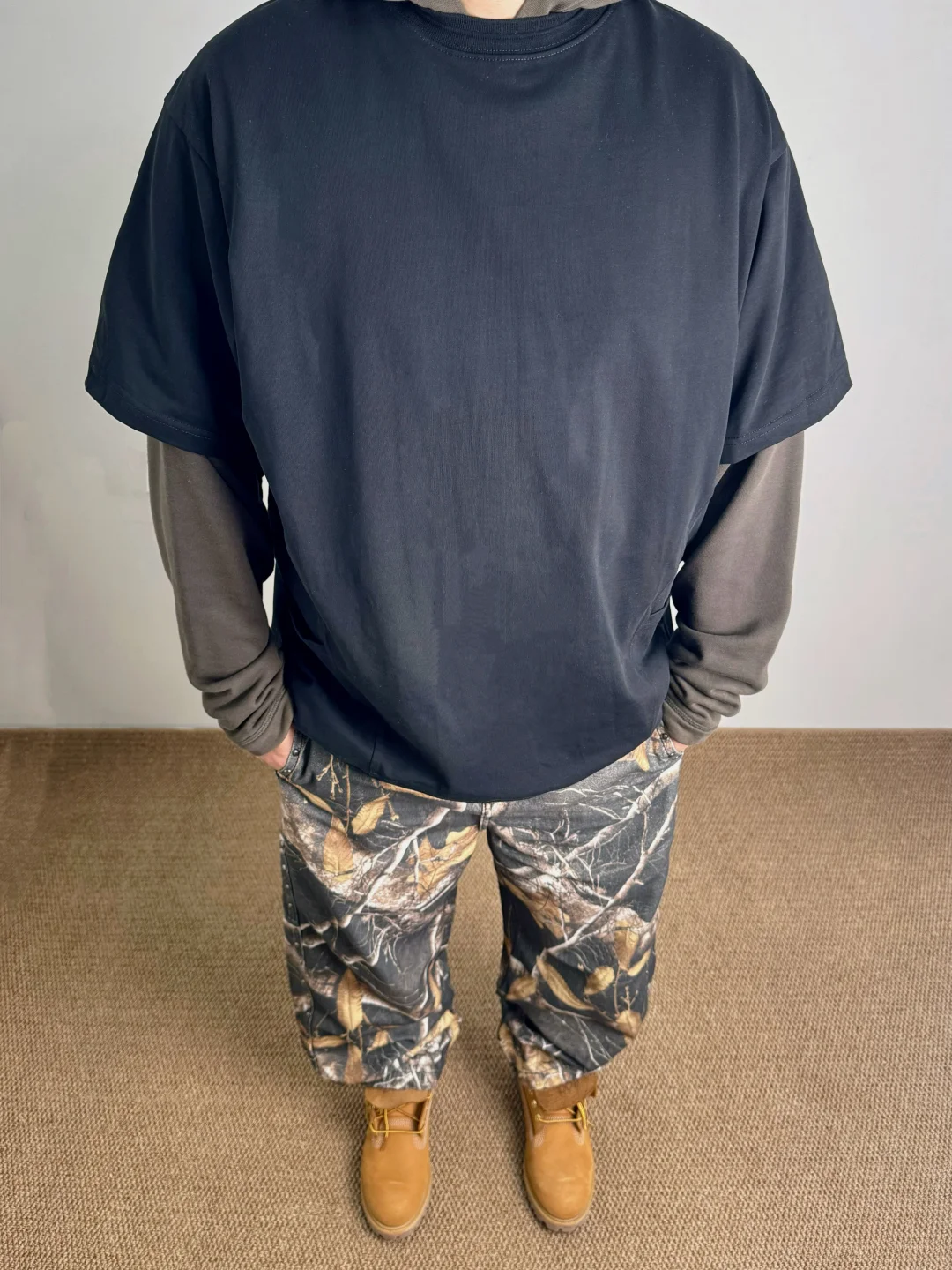 🍂大降温顶不住,回归长袖长裤,树叶迷彩我先穿了;“真树”画家裤,跟之前的“法工蓝”同版型,春夏面料变薄,更适合现在穿