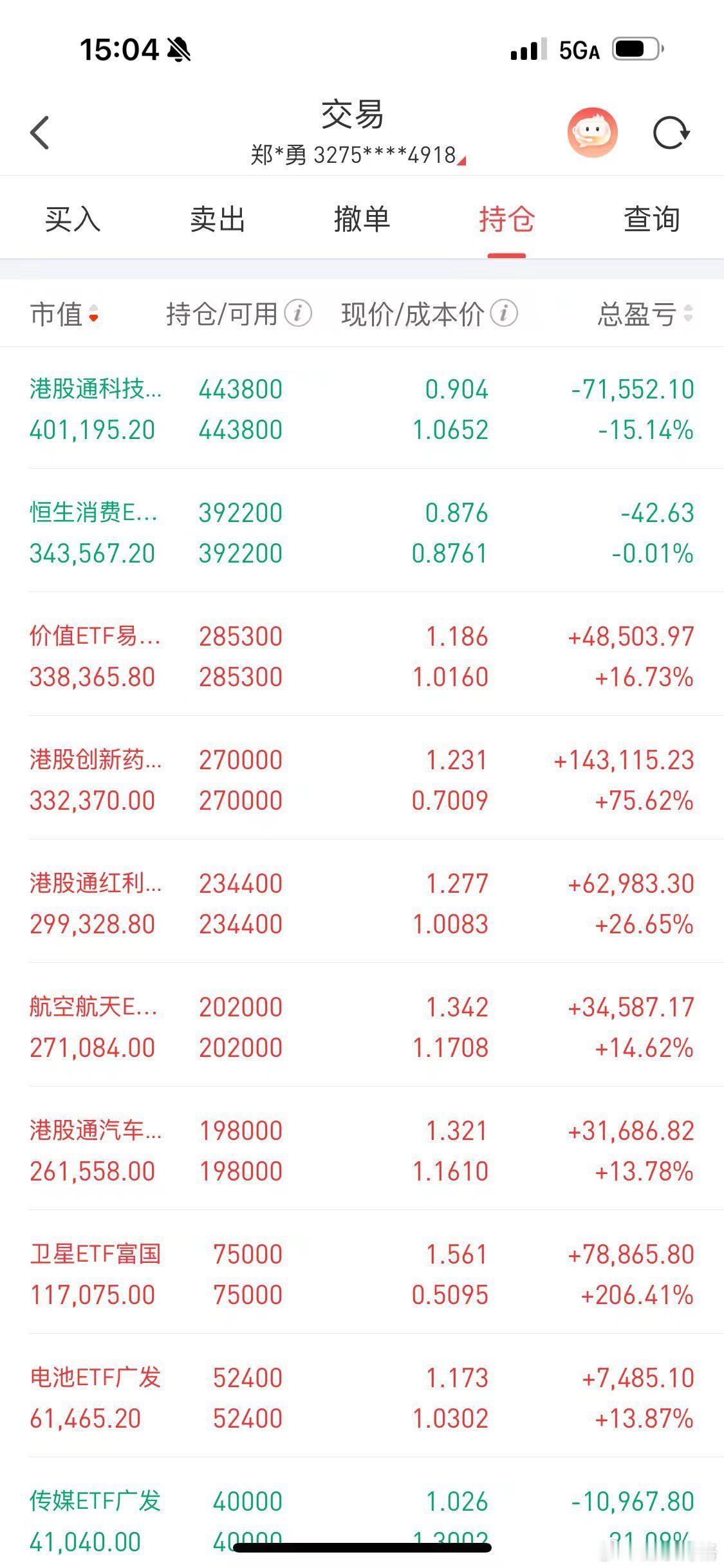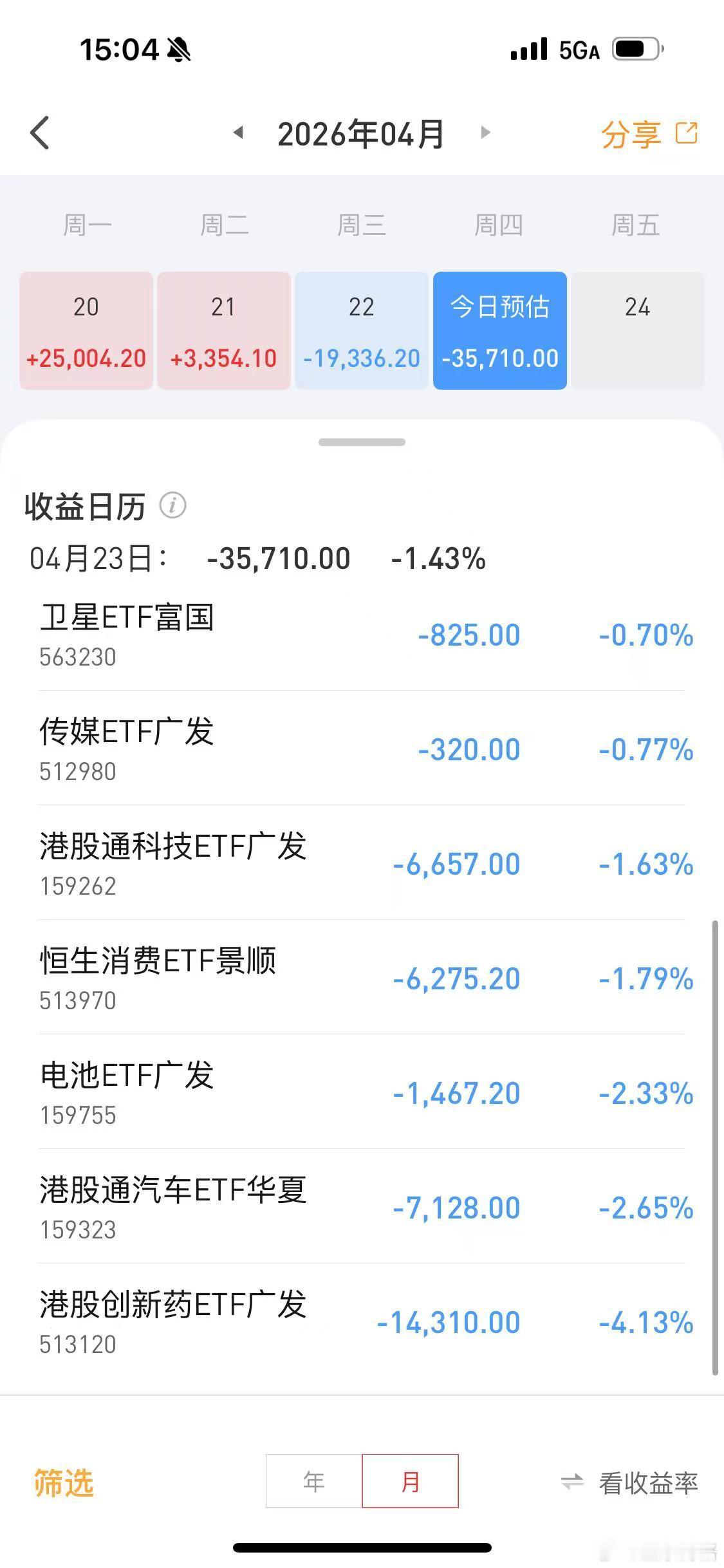 博格今天ETF账户巨亏3.6万,本周收益直接反绿~这个就是重仓港股ETF的代价。盘中有人问博格,恒生科技、港股创新药这样跌,是不是有什么说法?问题我也不知道有啥说法~反正博格觉得估值便宜就继续扛着了,另外之前私域发车做了一点点医药汉堡波段(一个月盈利15%),如果创新药继续跌,就把之前波段卖出的医药汉堡再买回去。大家多点赞,博格持续晒实盘~恒生科技基金