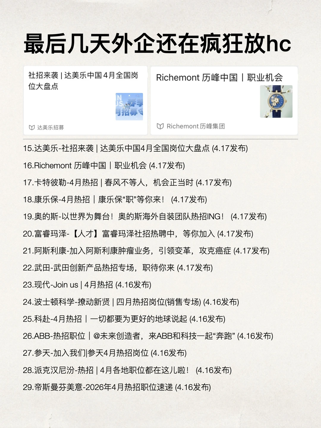 4月最后几天了,外企都还在疯狂放hc
