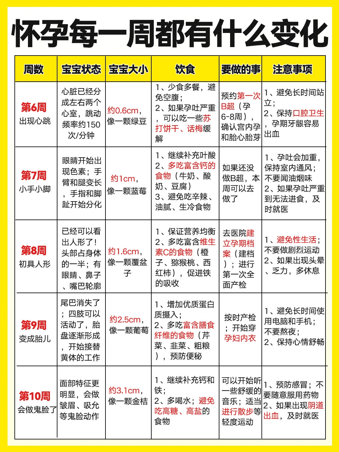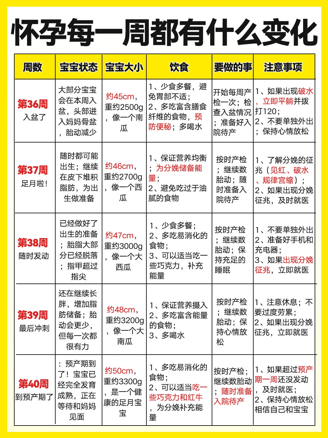 怀孕1-40周胎儿发育过程✅注意事项➕饮食营养