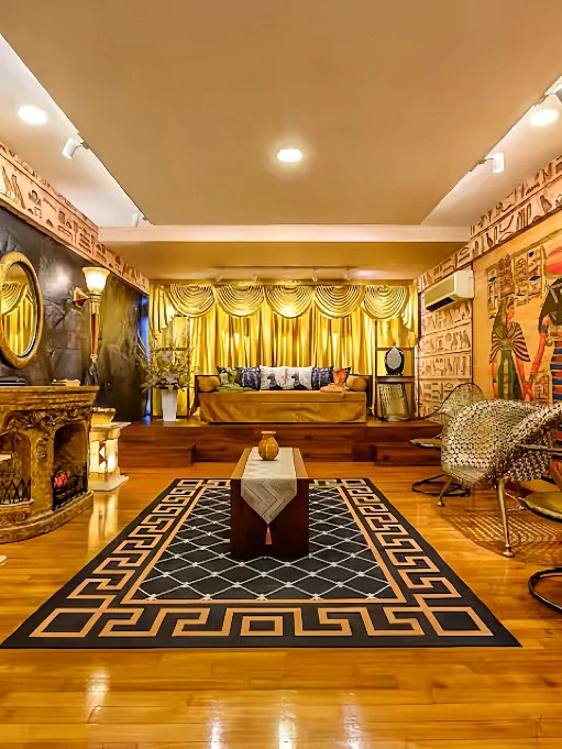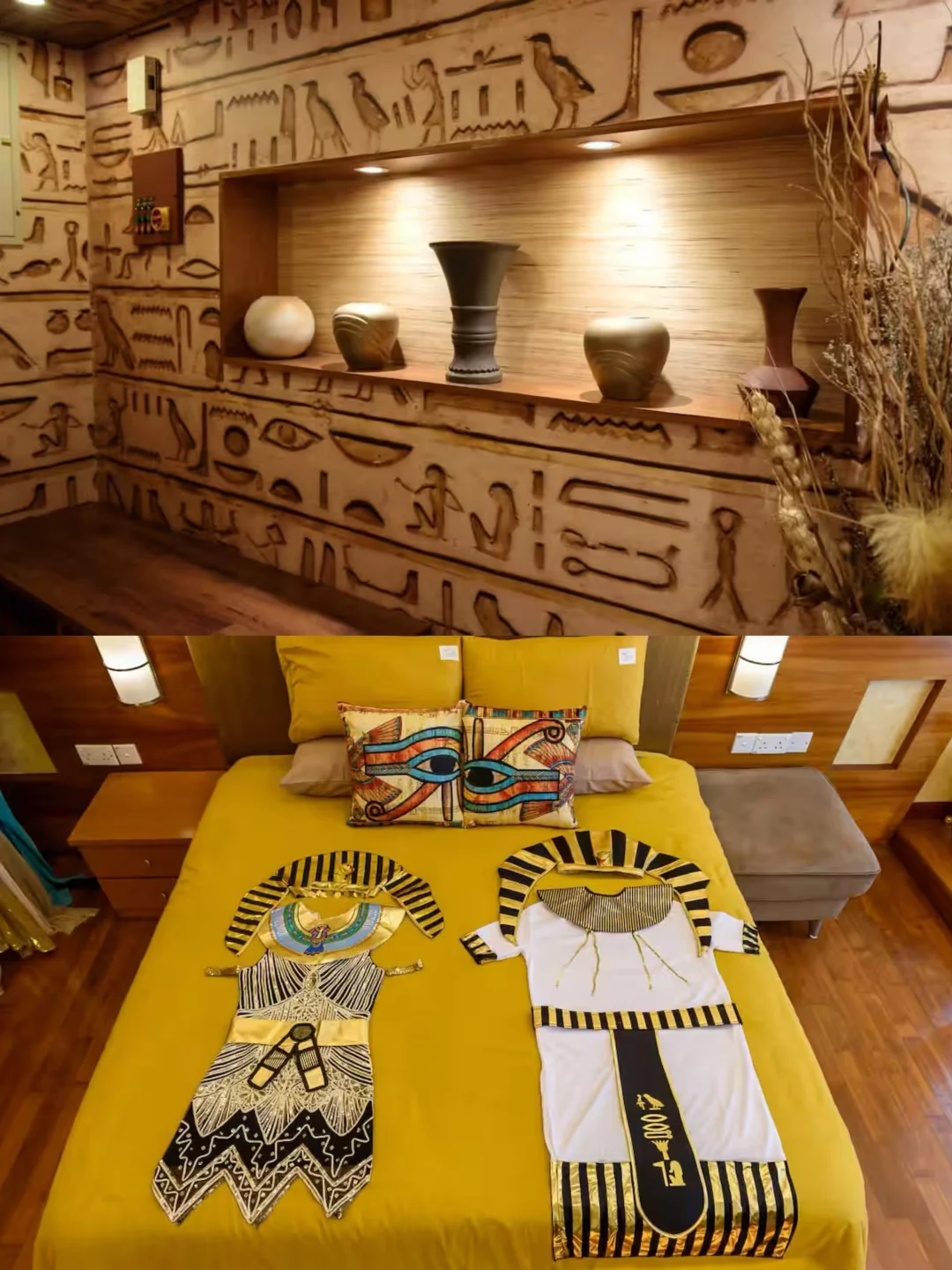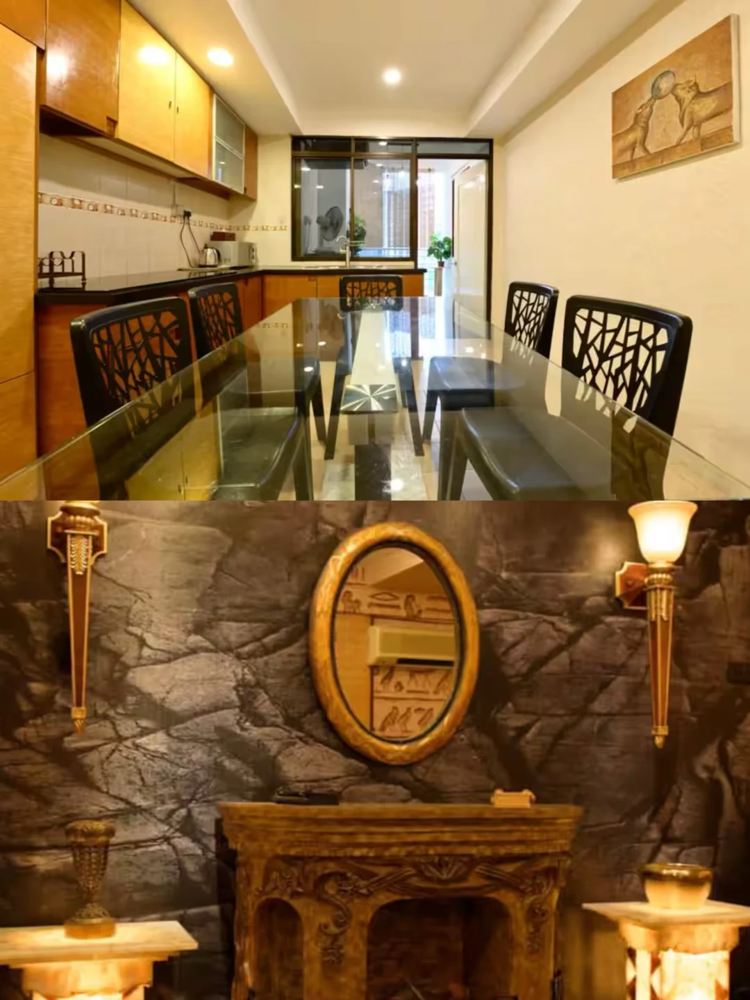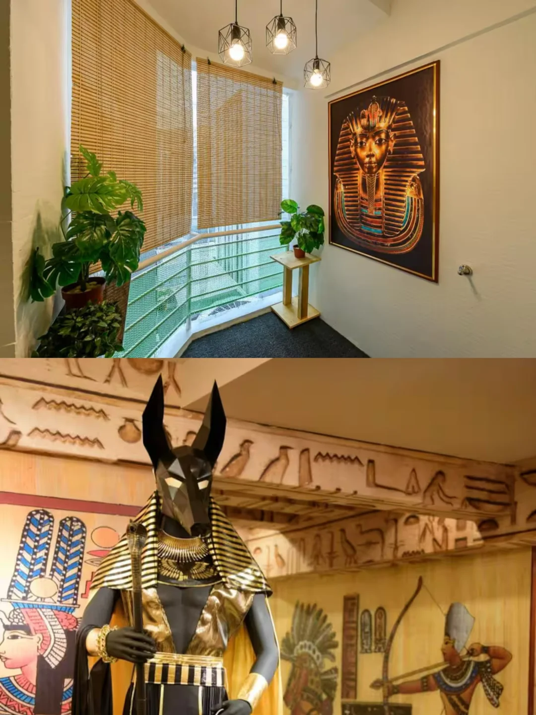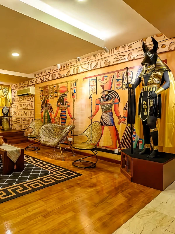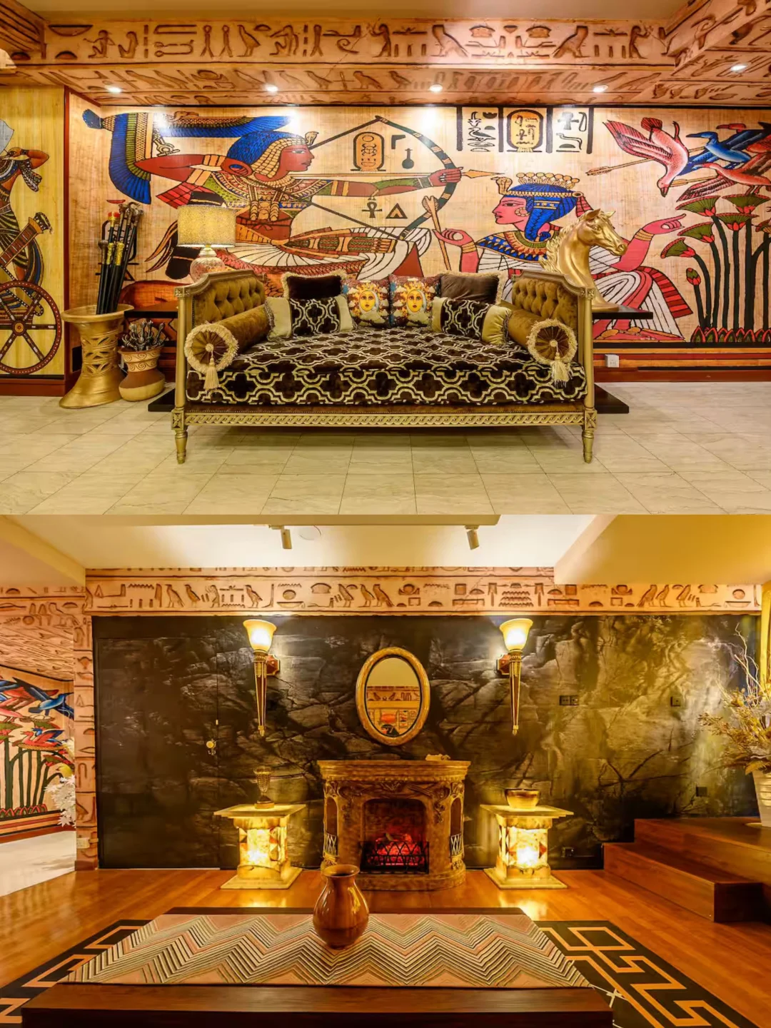 🏠民宿被设计成了埃及主题,从进门开始,就会被眼前的古老奇观深深震撼!象形文字装饰、埃尼风格的壁画、雕塑、摆件······简直就像一个博物馆