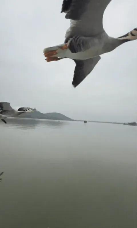 下一秒,奇迹真的发生了!一只大雁缓缓降低高度。