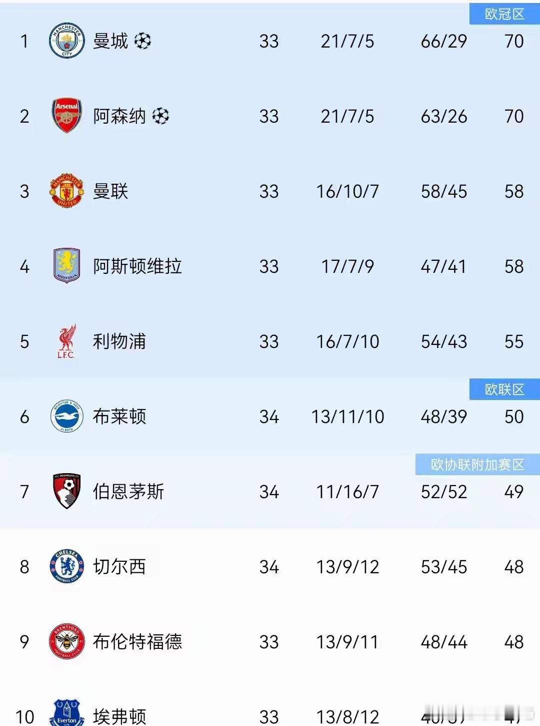 英超第34轮多场焦点战落幕,积分榜格局巨变。曼城客场1-0小胜伯恩利,哈兰德开场破门制胜,抹平此前分差,凭借进球数优势反超阿森纳登顶榜首,球队各项赛事豪取连胜强势冲冠。