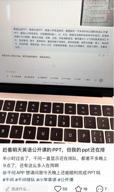 最近刷到个扎心现象:老师集体疯用千问做课件,一度把平台挤到需要排队。