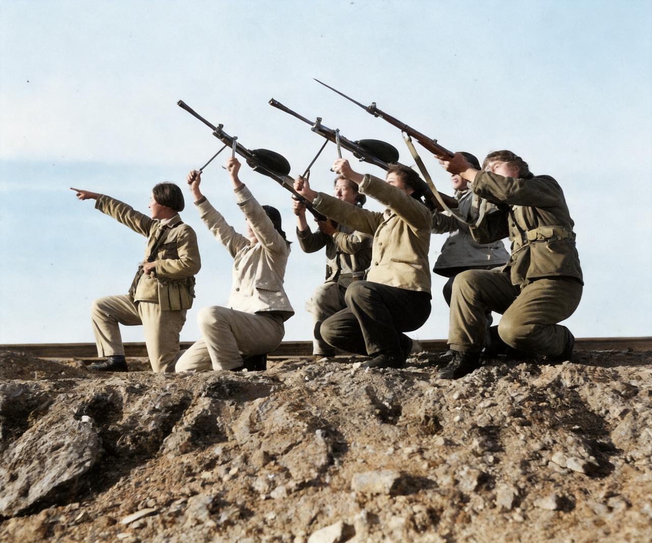 其中,射手负责瞄准,射击,时刻紧盯空中追踪目标,弹药手主要负责提供弹药,排除故障,架枪手高举三脚架稳定枪身,保持机枪对空仰角。还有其他人负责测距、指挥、报靶。这些人构成了一个战斗小组。他们之间必须协作密切,任何人都不能大意马虎。