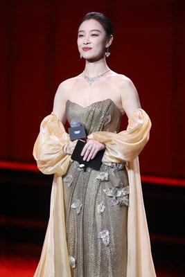 倪妮一袭抹胸长裙