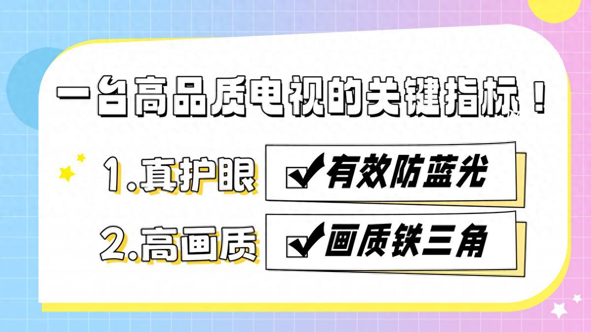 之前总觉得买电视不就是看颜色艳不艳、够不够大吗?直到今年,我看到了一些关于青少年视力的一些文案,才深刻的了解到这些电子大屏如何才能做到真正的护眼。单从电视来说,色彩确实重要,但是整体的画质以及它是不是真正的能够防住蓝光对视力的危害也至关重要