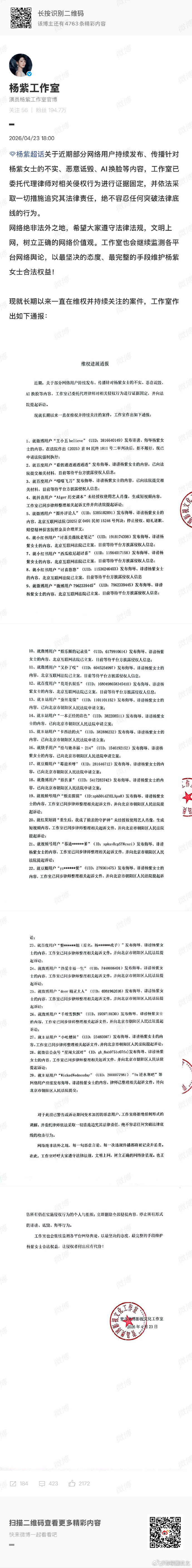杨紫工作室AI换脸维权进展杨紫方AI换脸告黑维权进展 杨紫方AI换脸告黑维权进展,支持杨紫维权!