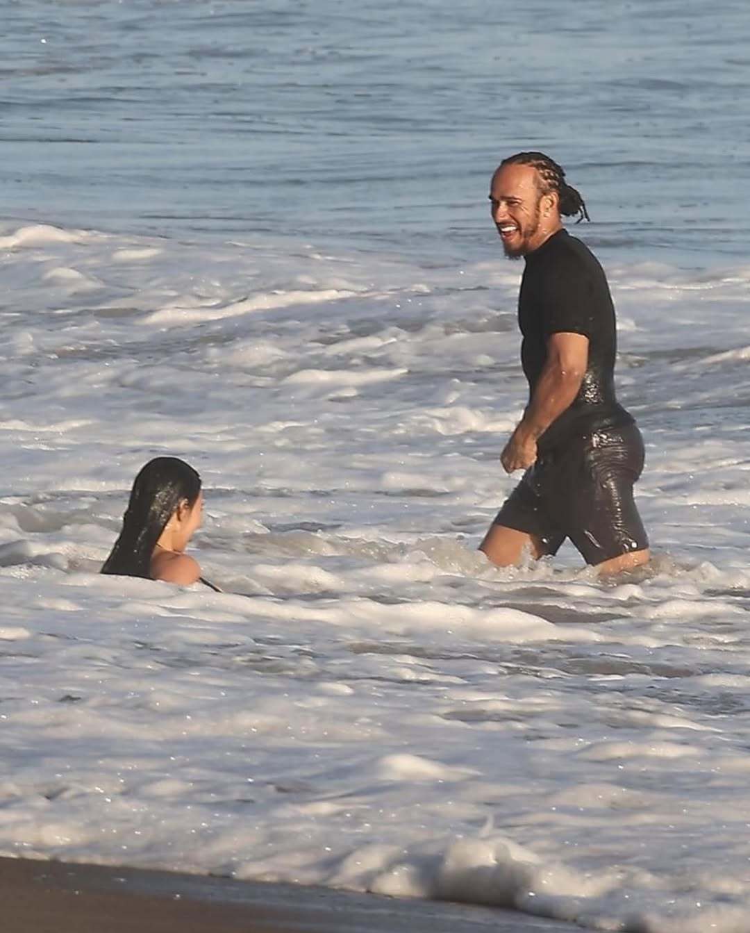 汉密尔顿:“老汉的快乐你想象不到~”近日汉密尔顿和卡戴珊在马布里海滩游玩,肢体互