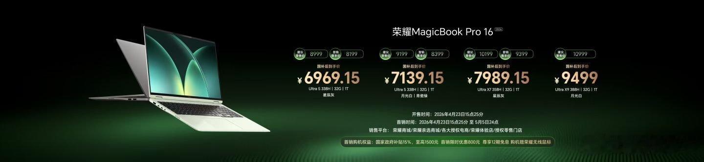 荣耀WIN游戏本荣耀MagicBook Pro14/16荣耀MagicBook X系列价格都在这里了,你想买哪一个?