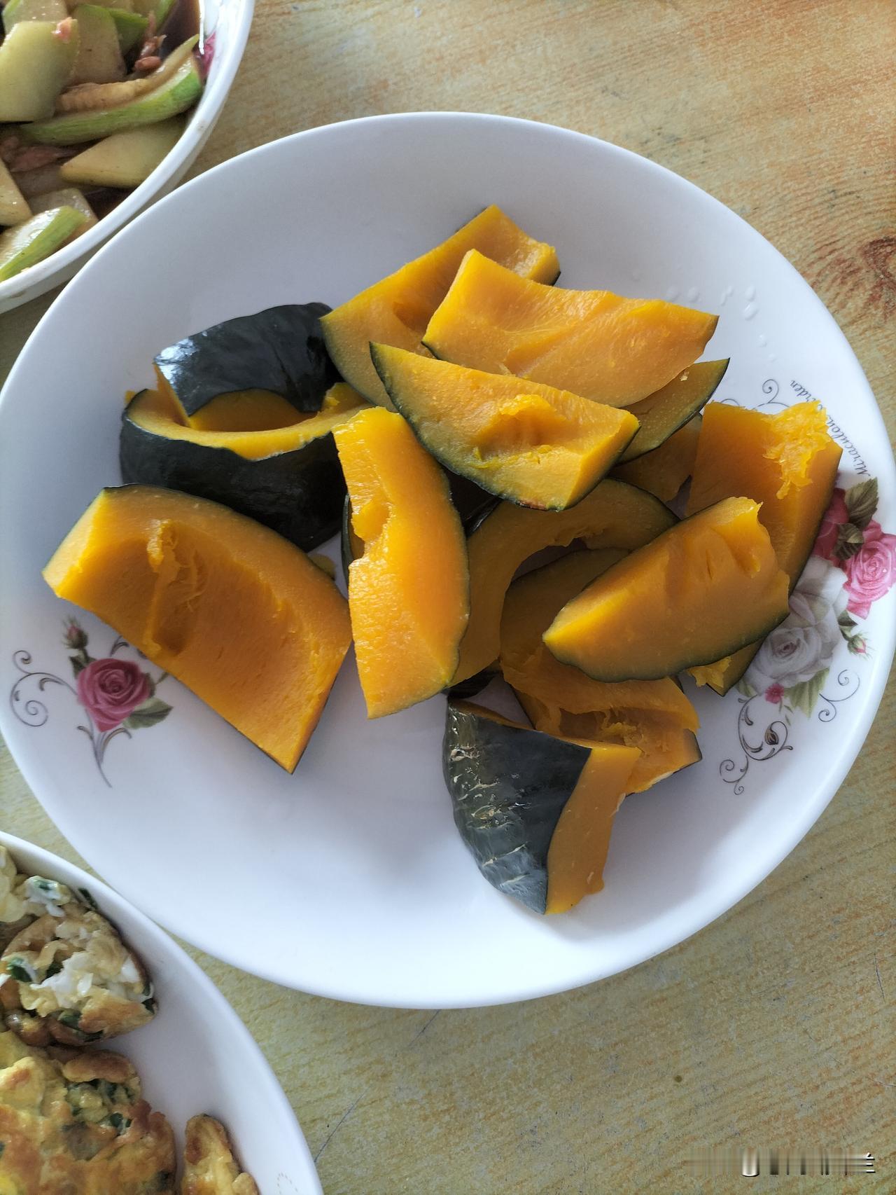 蒸米饭的时候顺便蒸了一个小南瓜。