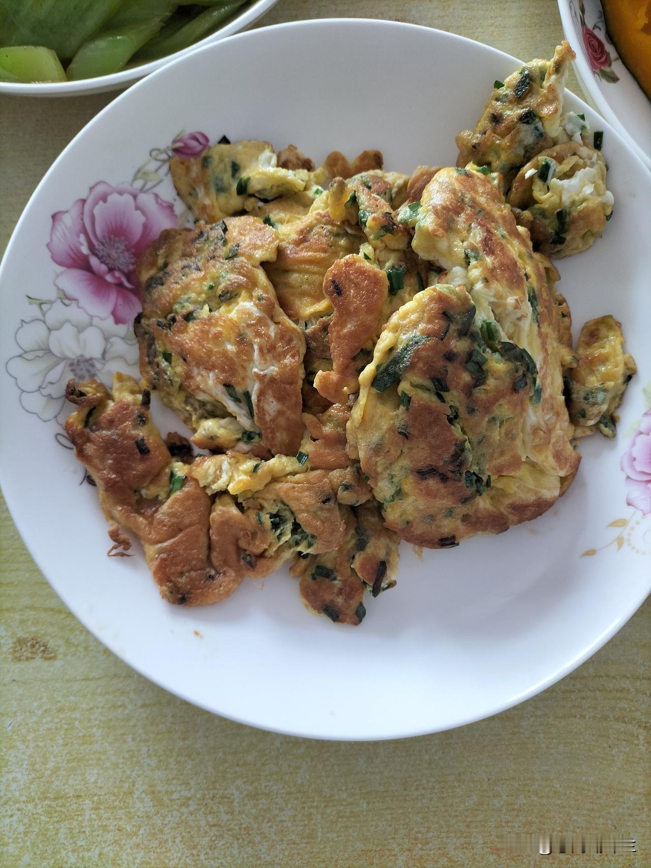 韭菜炸鸡蛋是最香的,做的时候就香味扑鼻,吃起来更香,还是自己家的鸡蛋好吃。