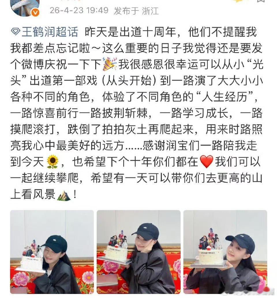 王鹤润出道十周年了王鹤润晒出道十周年蛋糕 哇塞,好有纪念意义的蛋糕,上面全是自己