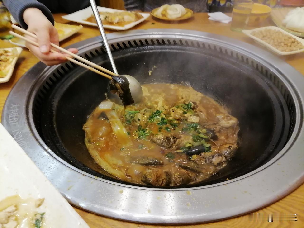 晚上,我们去附近吃铁锅炖鱼,边吃边聊。我和二姐聊的挺好。