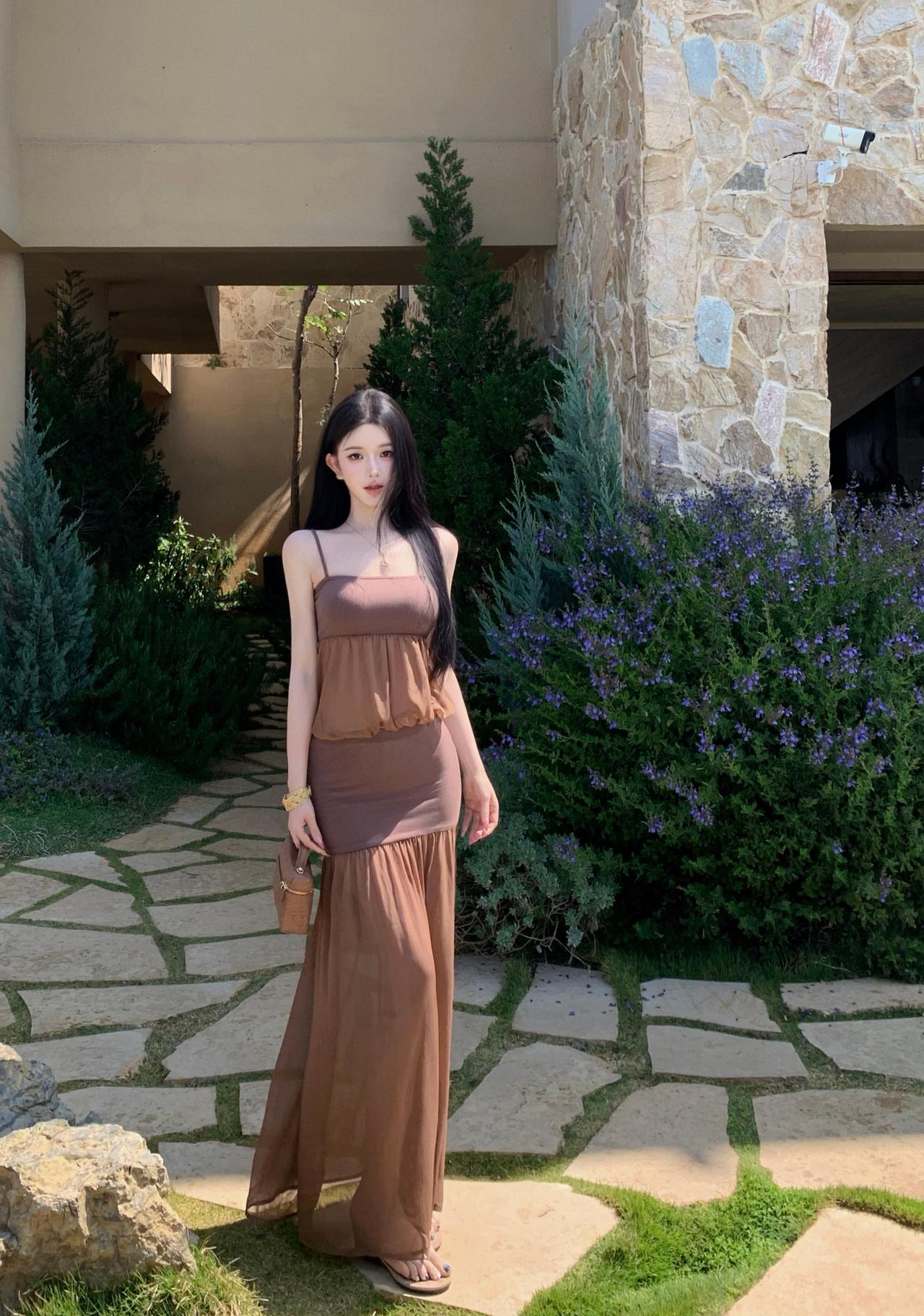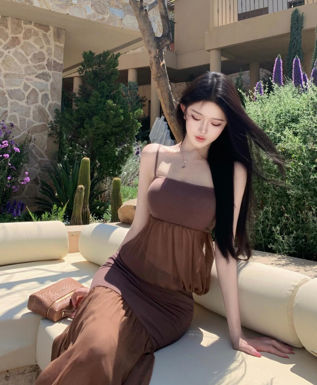 一身暖棕,自带温柔滤镜。 裙摆随光影轻轻晃动,安静又明艳,低调里藏不住的好气质。