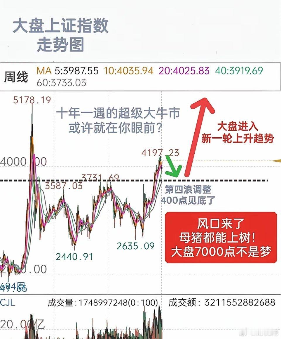 A股,牛市进入下半场,新风口来了,母猪都能上树?风口来了,风口可以是行业新趋势,也可以是牛市趋势,这里指的是牛市趋势。 当前牛市已经进入下半场阶段,后市或将加速上涨,所以风口来了。为什么大盘最近半个月的走势很好?因为这是牛市,因为牛市经过第四浪的400点调整修复以后,现在已经进入新一轮主升浪行情,所以最近半个月的走势非常强势。 与此同时,今天沪深成指大涨1.3%,正式突破15000点,最关键的是,深证成指今天突破了酝酿20年的上升三角形形态上轨压力线,突破后将会势如破竹,后市或将加速上攻。同时,标示着沪深成指指数进入新的阶段,也就是进入牛市下半场阶段,后市可期。 因此,我认为现在牛市已经进入新的上升趋势,新的风口已经来了。对此,元芳你怎么看?欢迎评论区留言。本文仅为信息分享与客观分析,不构成任何投资建议。市场有风险,投资需谨慎。股票a股财经