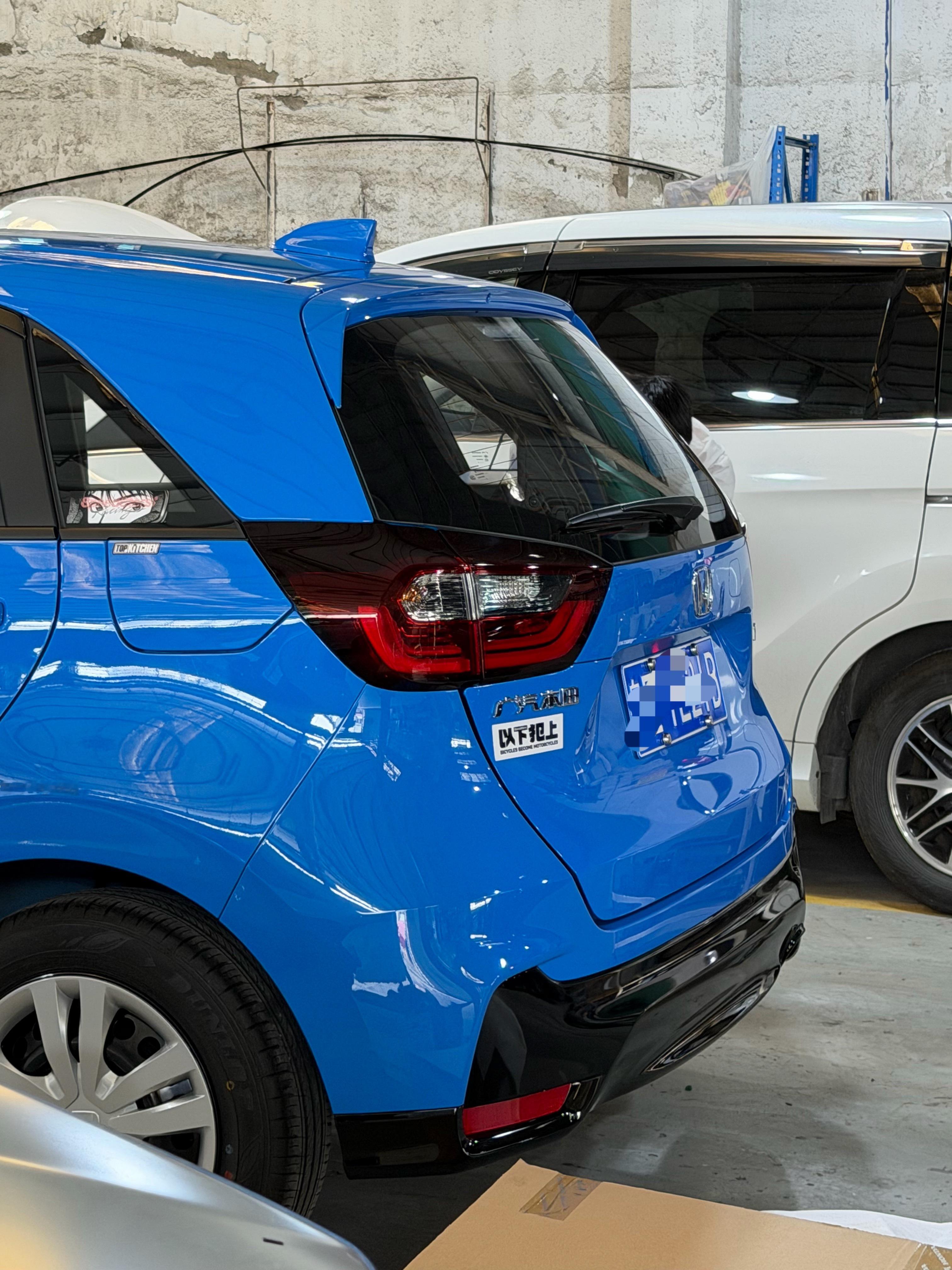 昨天给我的小飞度改了“日版”的短尾杠包围终于和尾门齐平了其实用上一代 GR9 的潮跑版尾包去本田 4S 订全新配件加喷漆,才两千多块