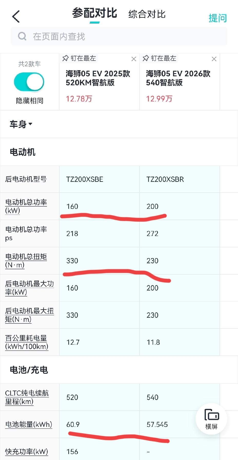 仔细一看,轴距加长5厘米,车长加了10厘米,关键是换了二代刀片电池,中配价格只涨了两千;外形最大的变化其实是——尾灯改成了“类‘元’设计风格”…[思考]等一下,怎么发动机功率大幅提高,最大扭矩却大幅下降;新款续航变长,但电池容量却变小…心情似乎好一点了[尬笑],有没有大神能“解读”一下?