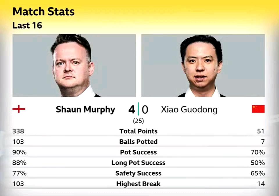 隔壁的肖国栋受到感染,被墨菲连胜4局进入中场休息。肖主播一定是挂念他的直播,想早点出局去直播世锦赛。