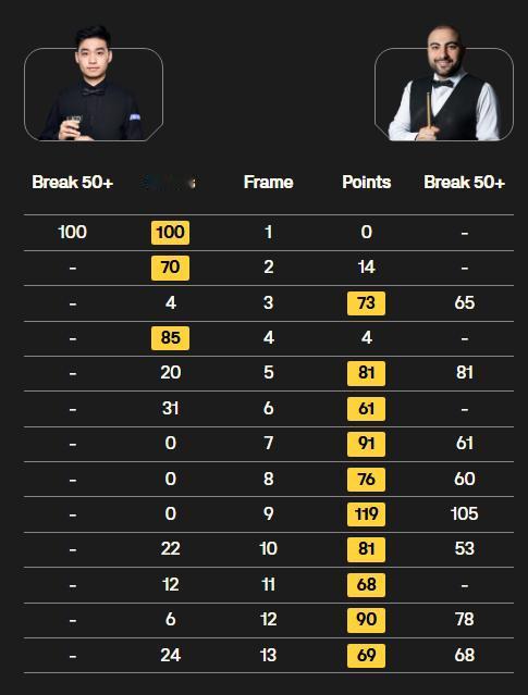 形势不妙的是,肖国栋在第二轮对阵墨菲,现在0-4落后。也许很快就没有我们什么事了。