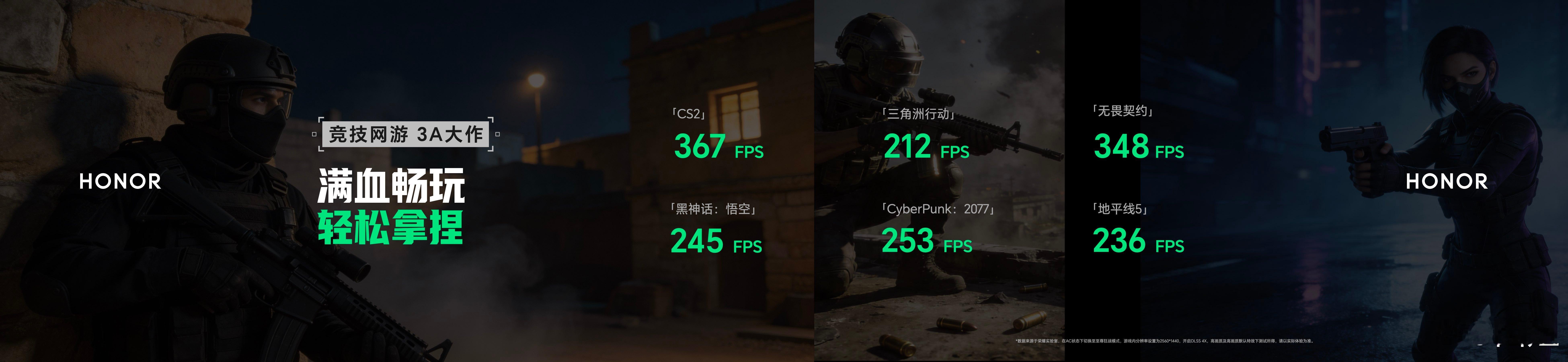 荣耀Gaming Turbo X技术在游戏体验上全方位升级,在开启Gaming Turbo X技术后,荣耀WIN游戏本 H9可实现《三角洲行动》212 FPS,《黑神话·悟空》245 FPS,《赛博朋克2077》253 FPS。