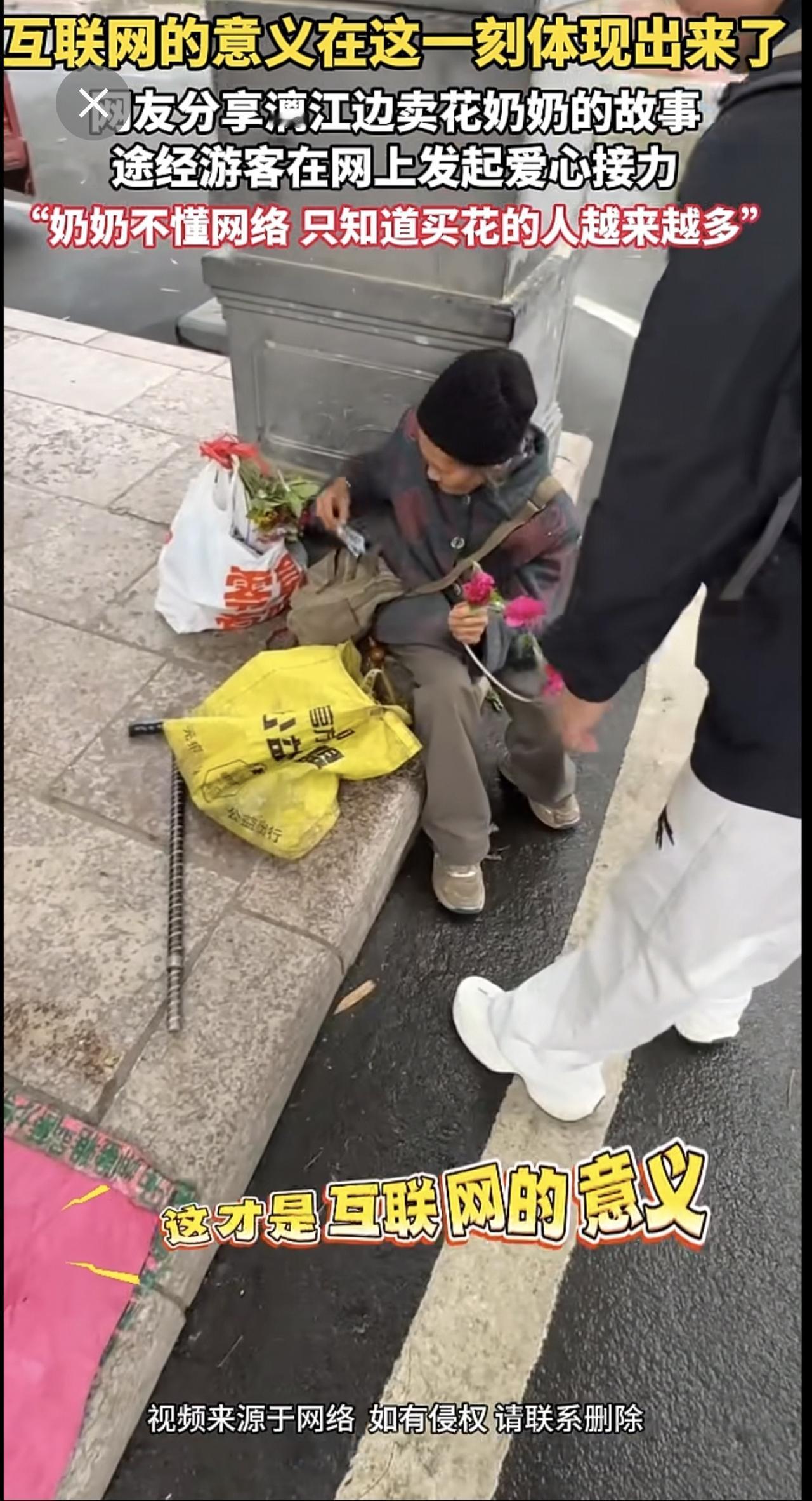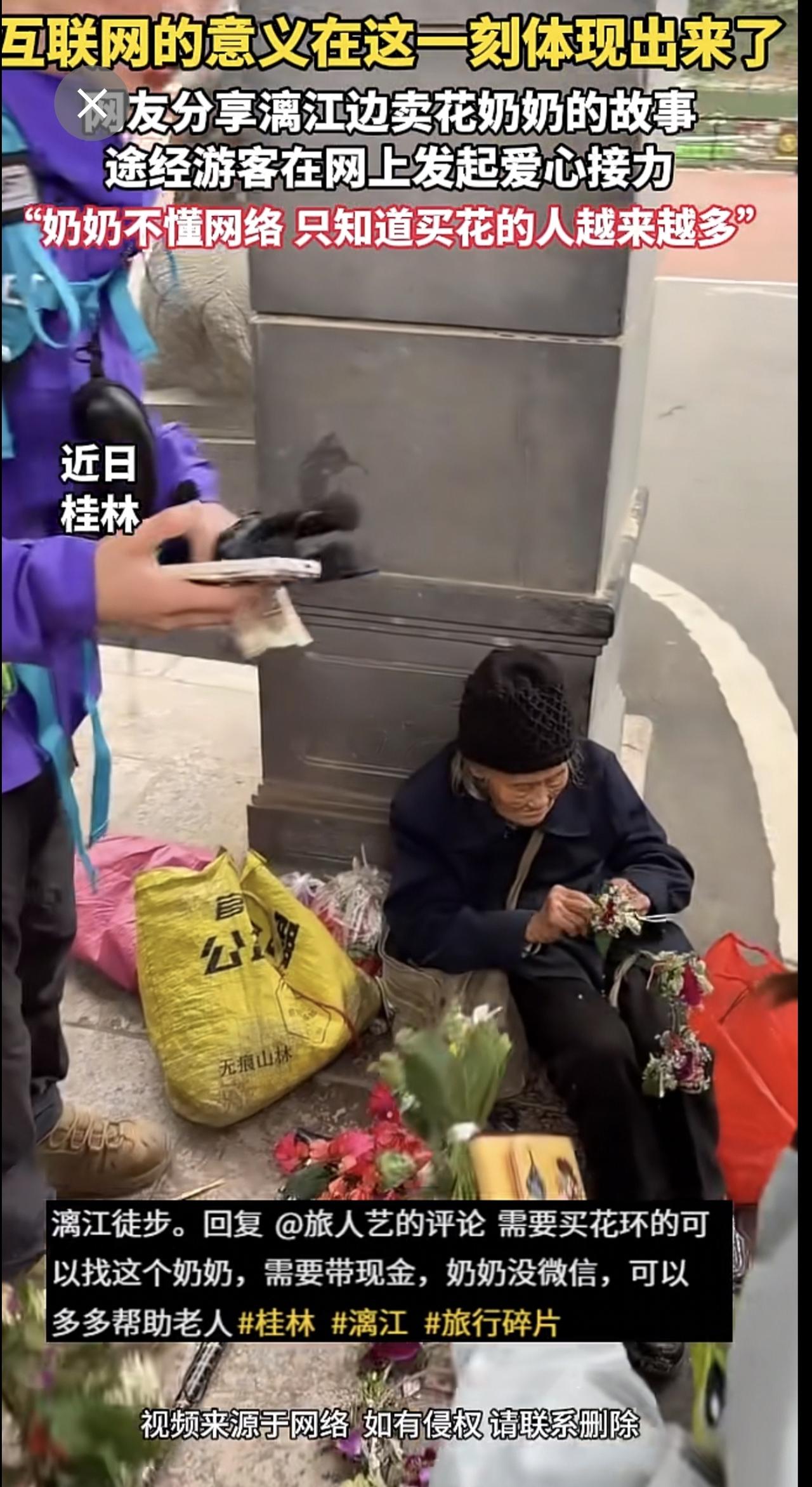 互联网的意义在这一刻体现出来了!网友分享漓江边卖花奶奶的故事,途经游客在网上发起爱心接力!