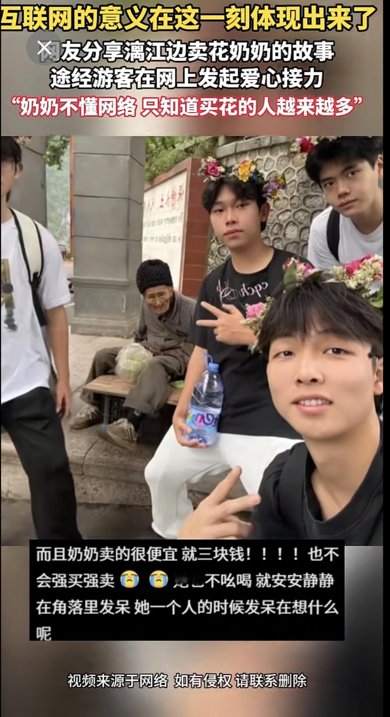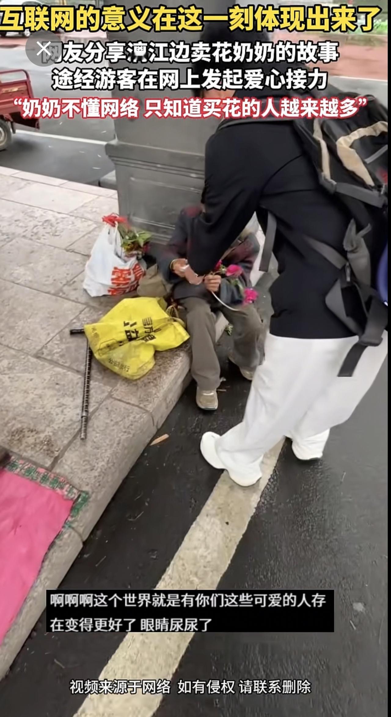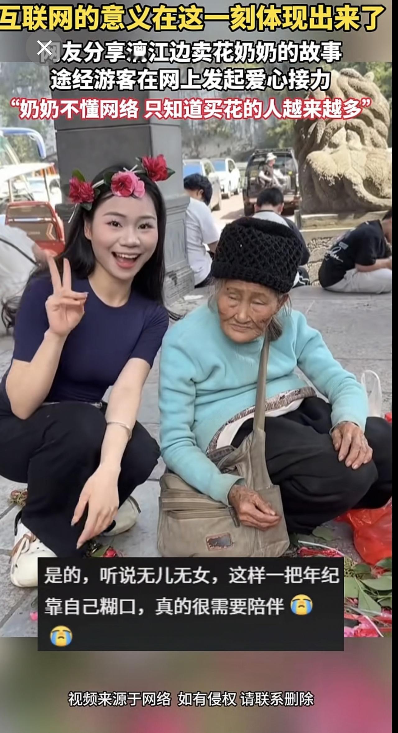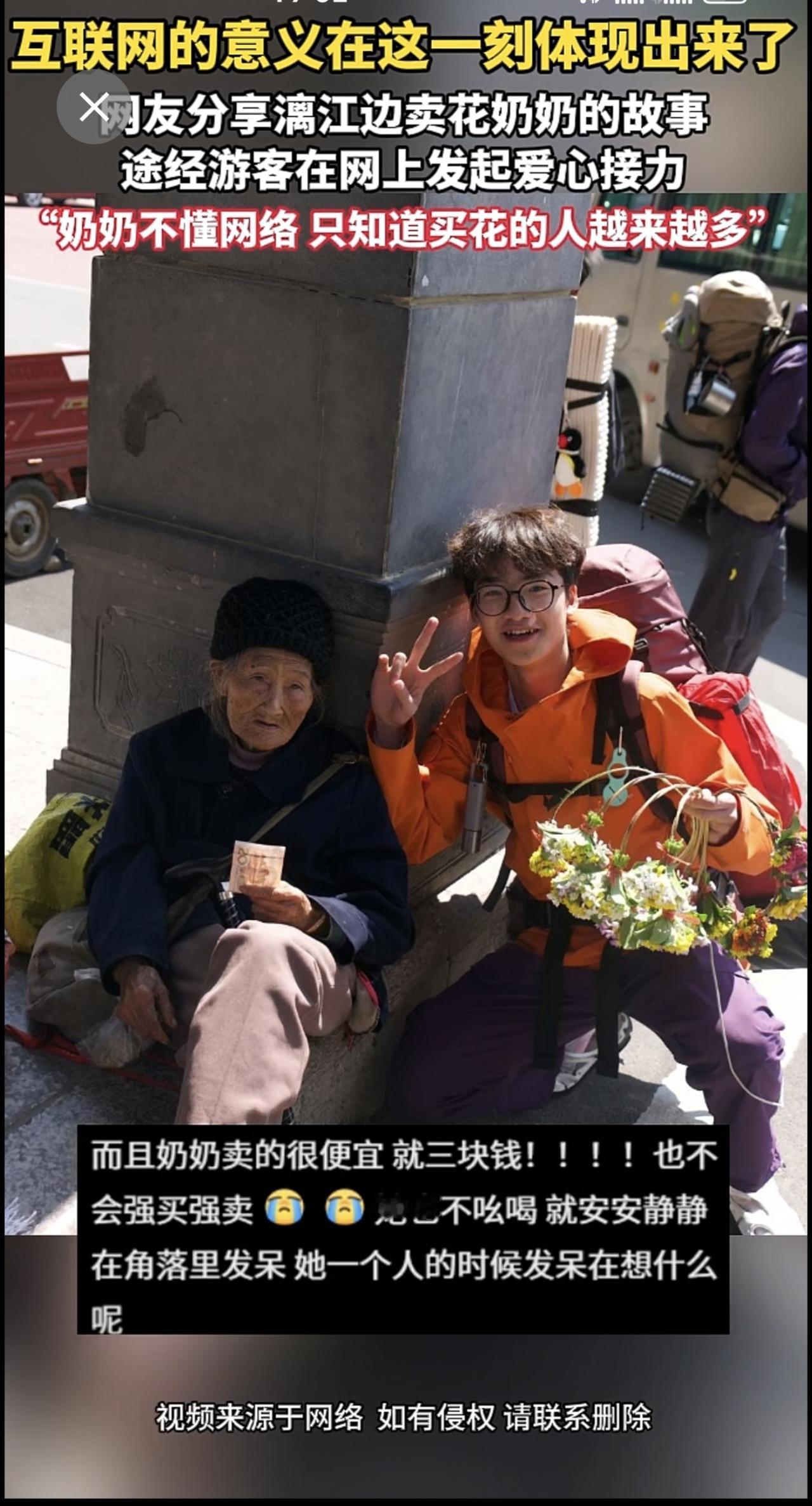互联网的意义在这一刻体现出来了!网友分享漓江边卖花奶奶的故事,途经游客在网上发起